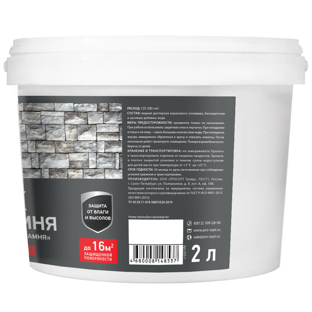 | Дополнительная информация | защищает минеральные поверхности от появления плесени, мха и высолов; не использовать для горизонтальных поверхностей, подвергающихся истиранию |