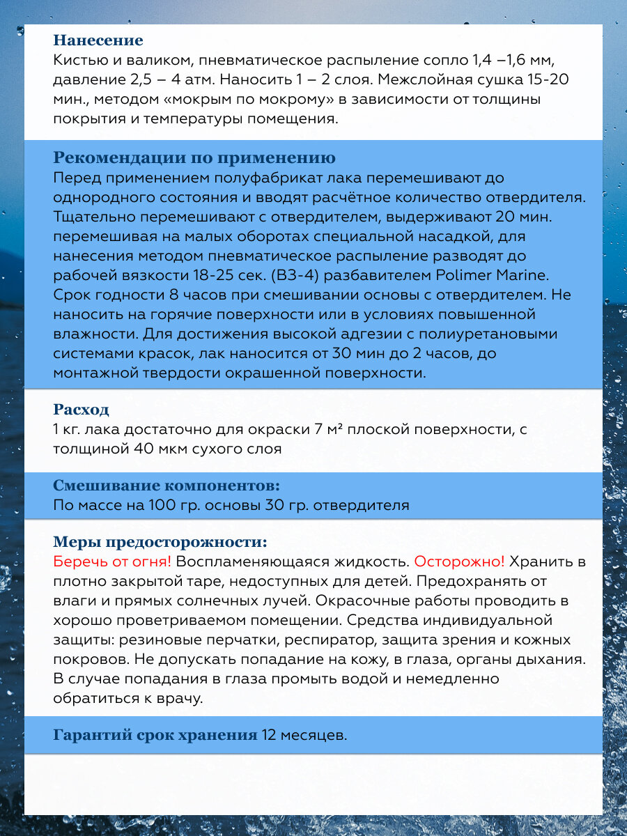 Полиуретановый высокоглянцевый лак для лодок и яхт Polimer Marine комплект 2.5 кг