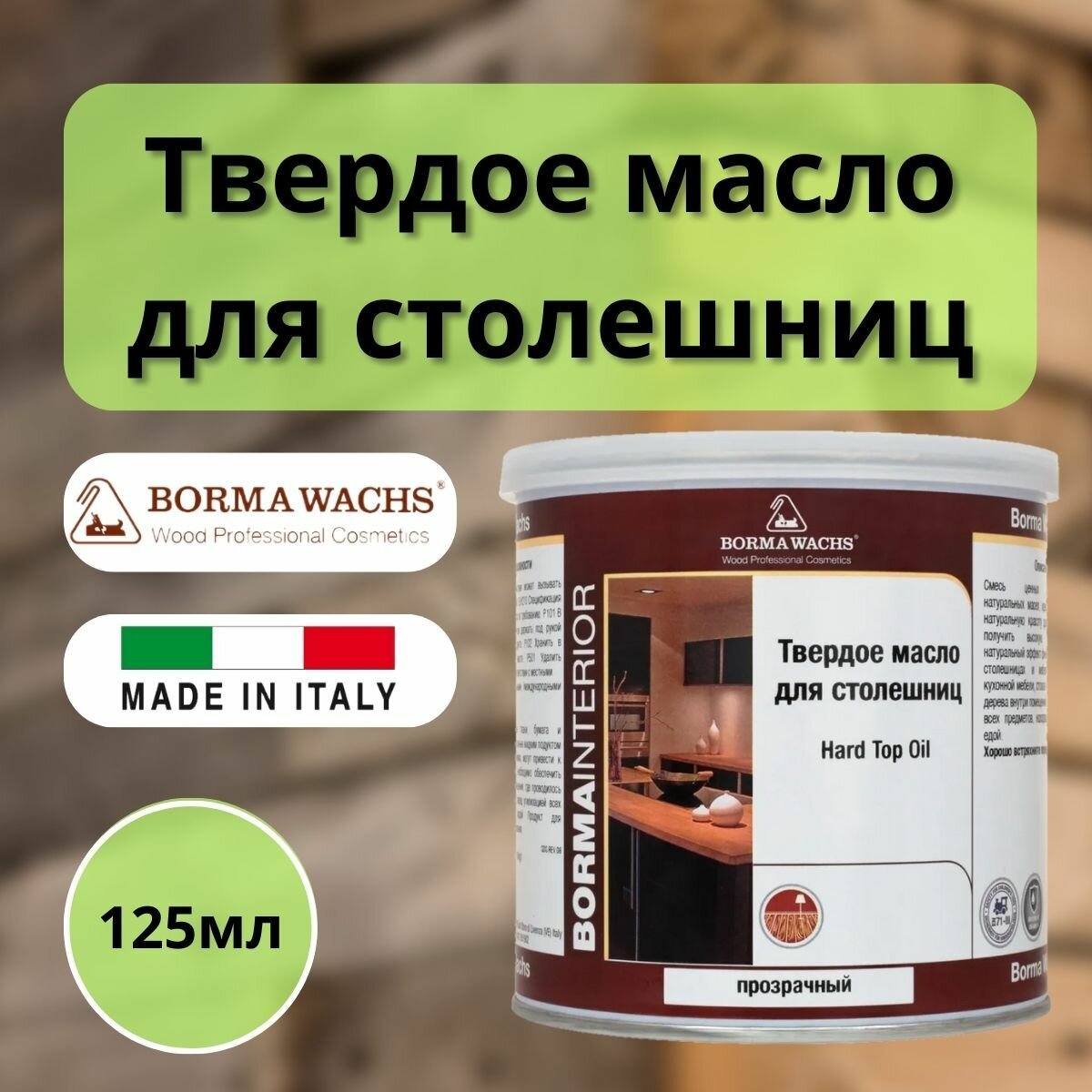 Масло для дерева BORMA WACHS Твердое масло для столешниц Hard Top Oil, Бесцветный, 125мл