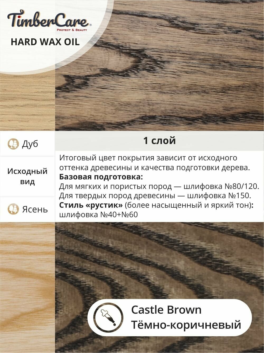 Масло для дерева с твердым воском TimberCare Hard Wax Color Oil пропитка для дерева для наружных работ Темно-коричневый/ Castel Brown, 0.75 л