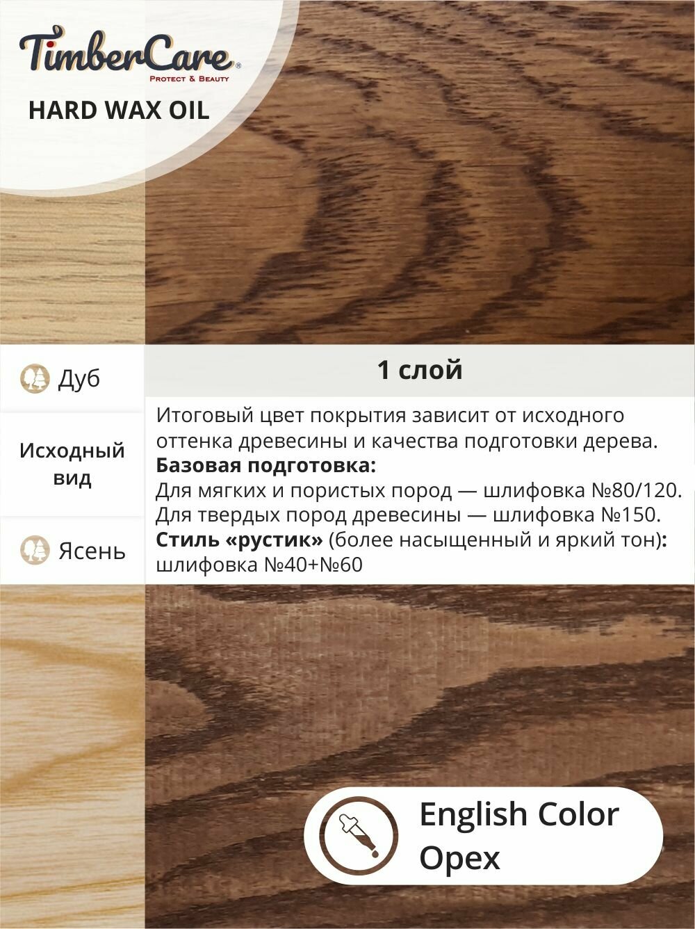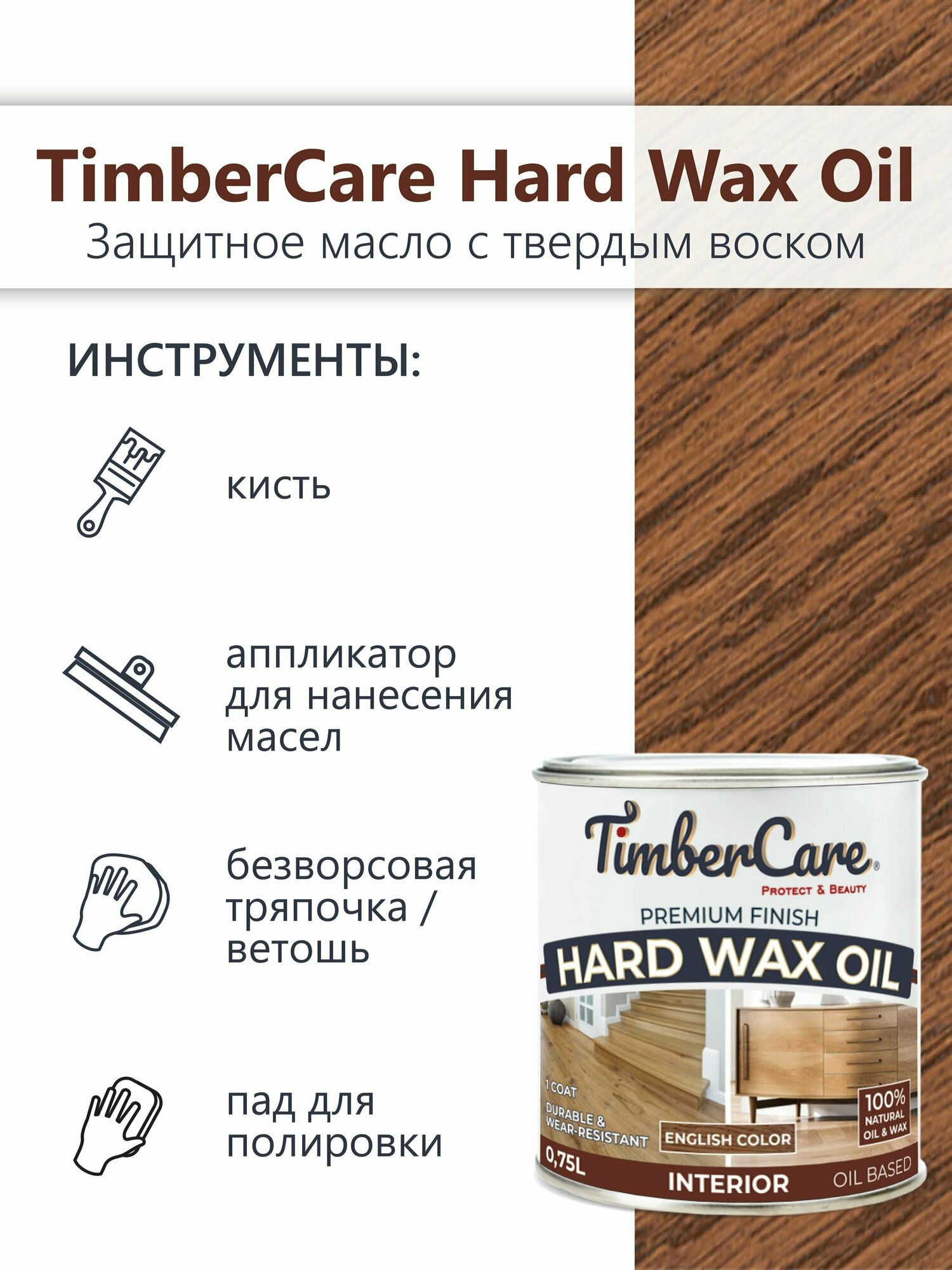 Масло для дерева и мебели с твердым воском TimberCare Hard Wax Color Oil, быстросохнущие для внутренних работ, Орех/ English Color, 0.175 л