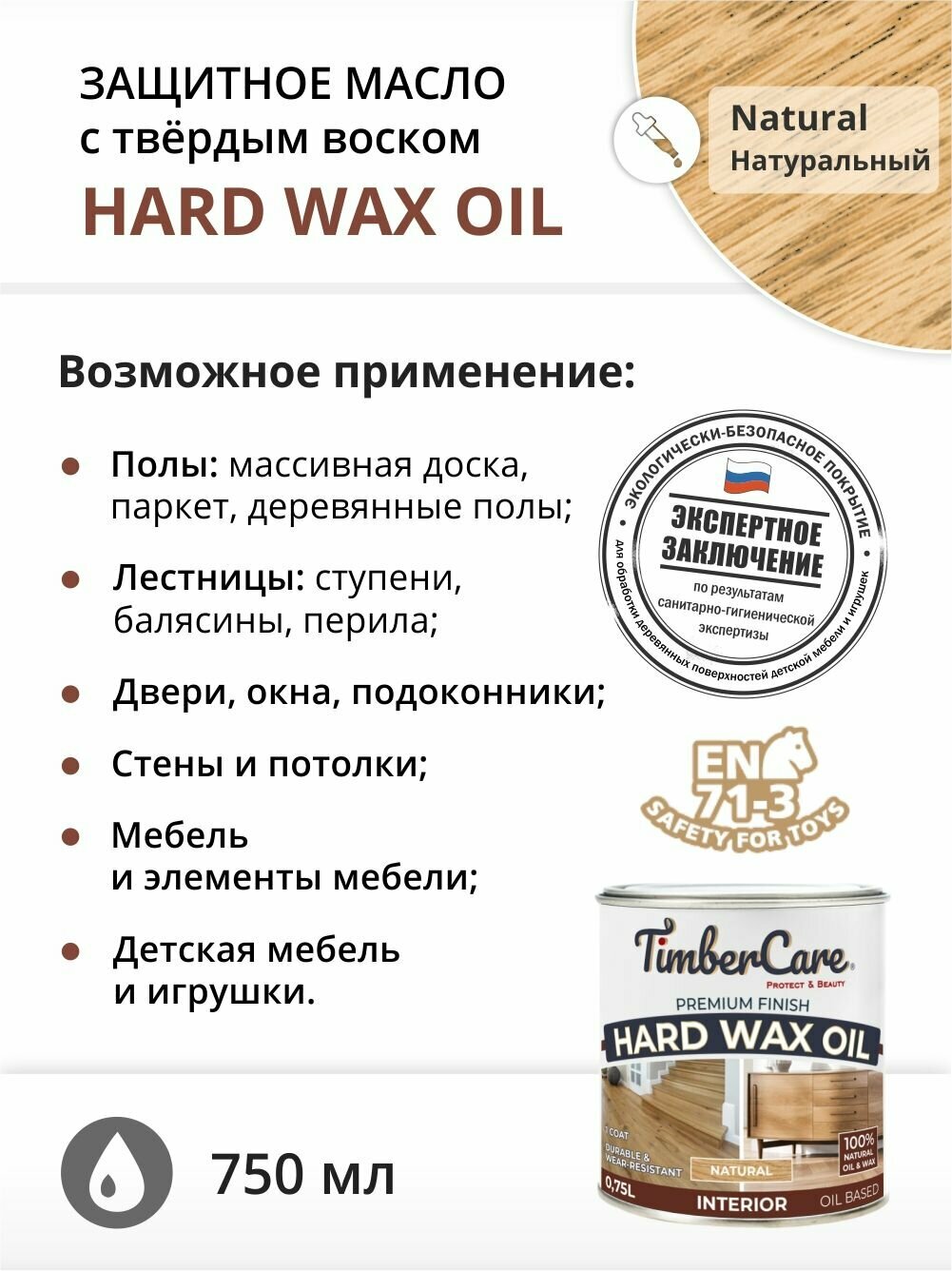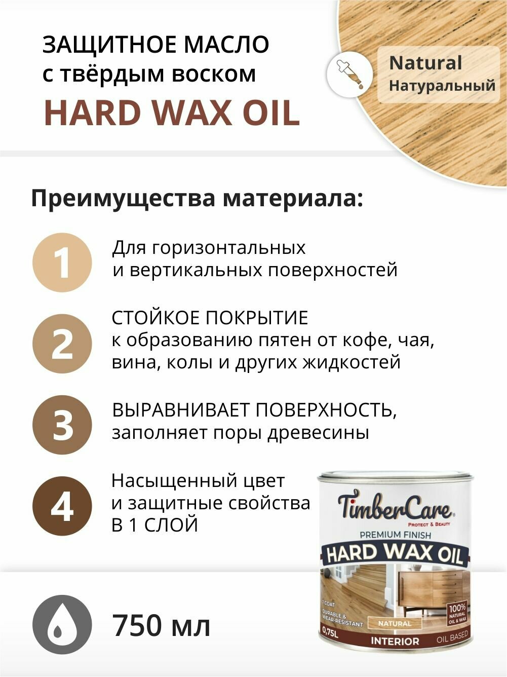 Масло защитное с твердым воском TimberCare Hard Wax Oil (Натуральный) 0,75 л