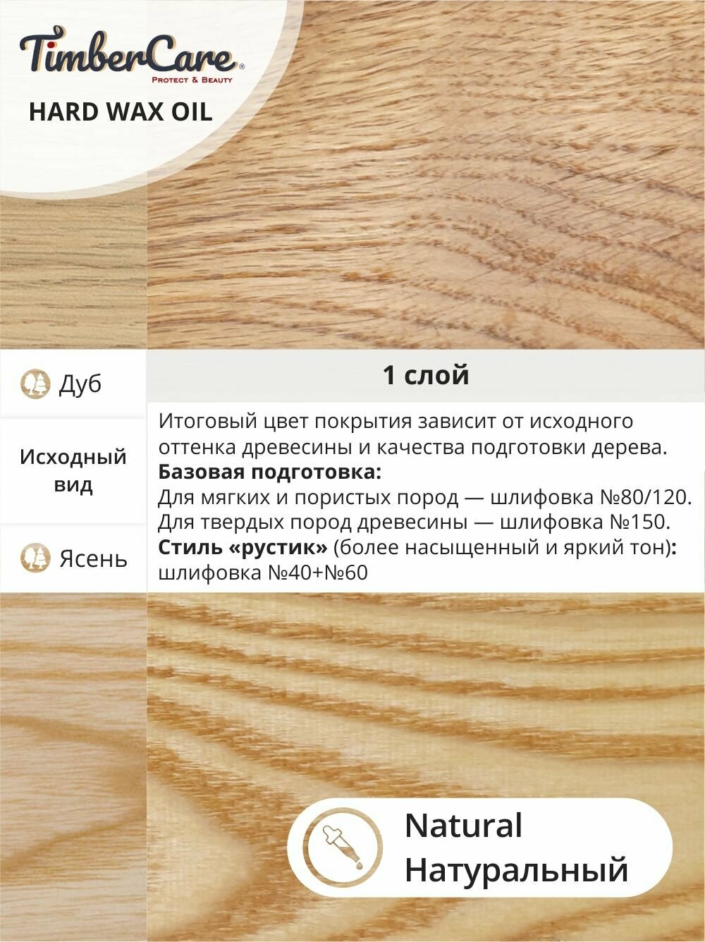 Масло для дерева и мебели с твердым воском TimberCare Hard Wax Color Oil, быстросохнущие для внутренних работ, Натуральный/ Natural, 0.175 л