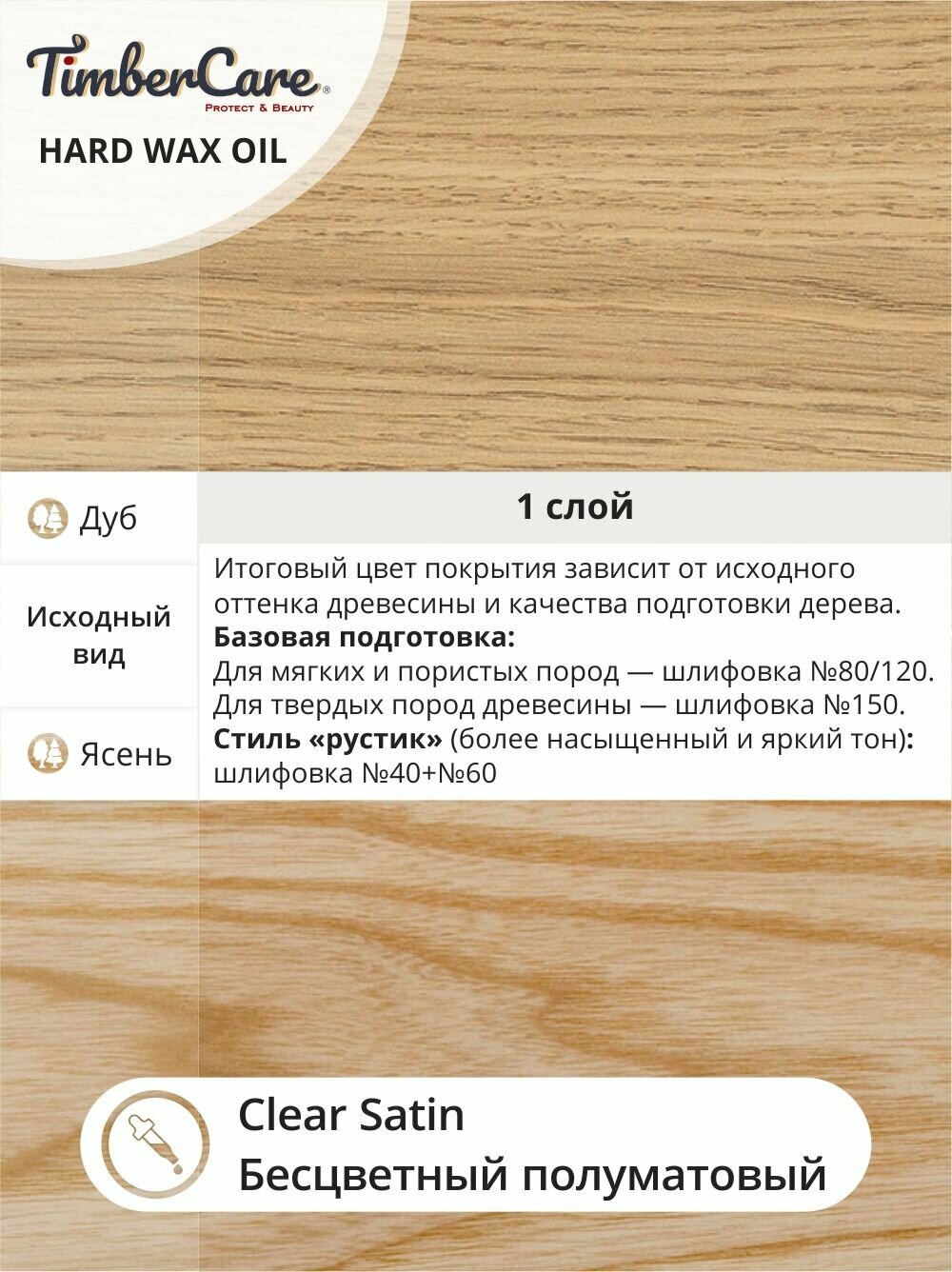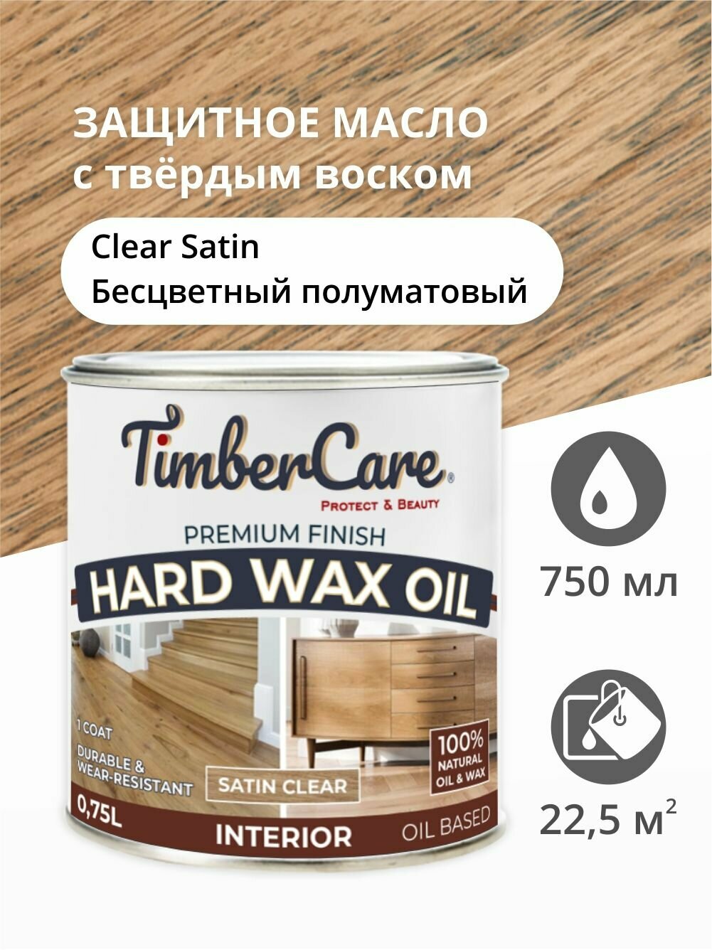 Защитное масло с твердым воском TimberCare Hard Wax Oil, Прозрачный полуматовый/ Clear Satin 0.75 л