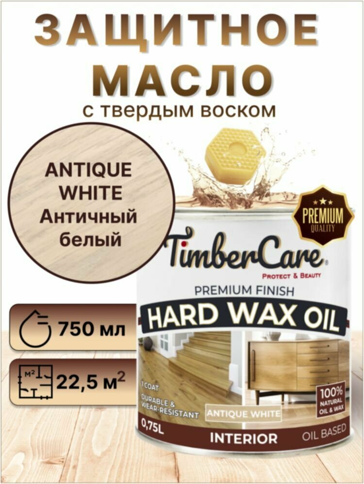 Масло для дерева и мебели с твердым воском TimberCare Hard Wax Color Oil, быстросохнущие для внутренних работ, Античный белый/ Antique White, 0.75 л