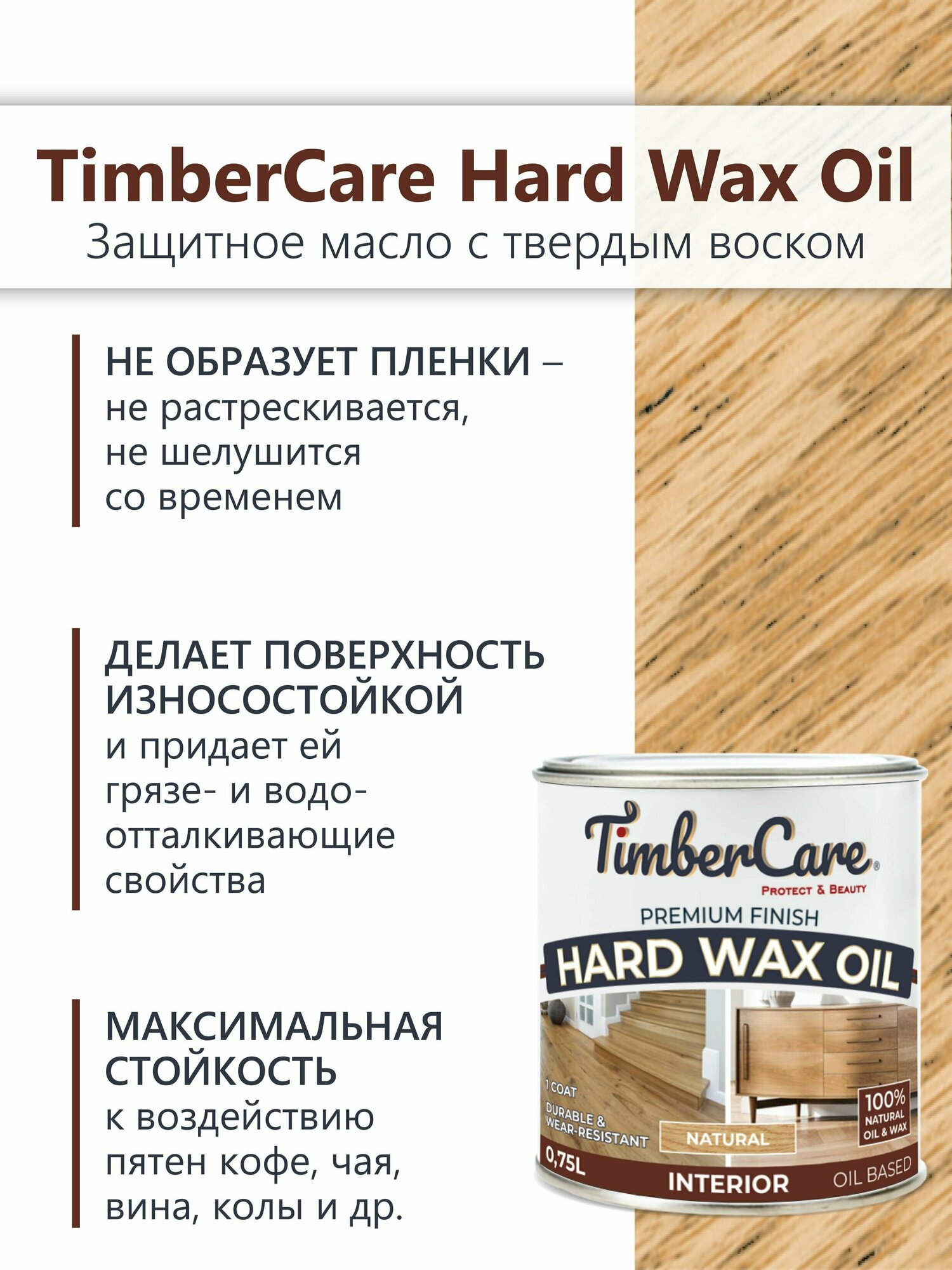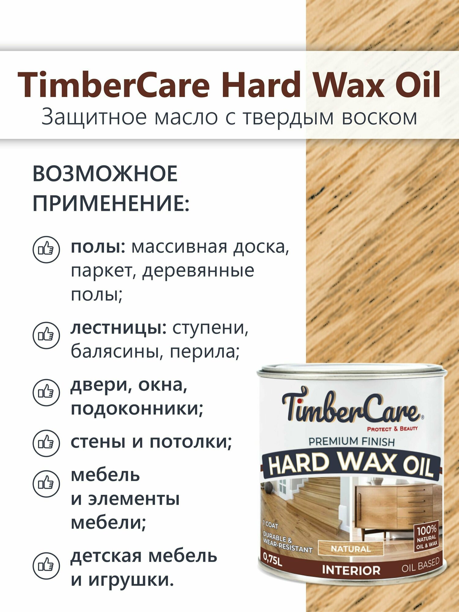 Масло защитное с твердым воском TimberCare Hard Wax Oil (Натуральный) 0,75 л