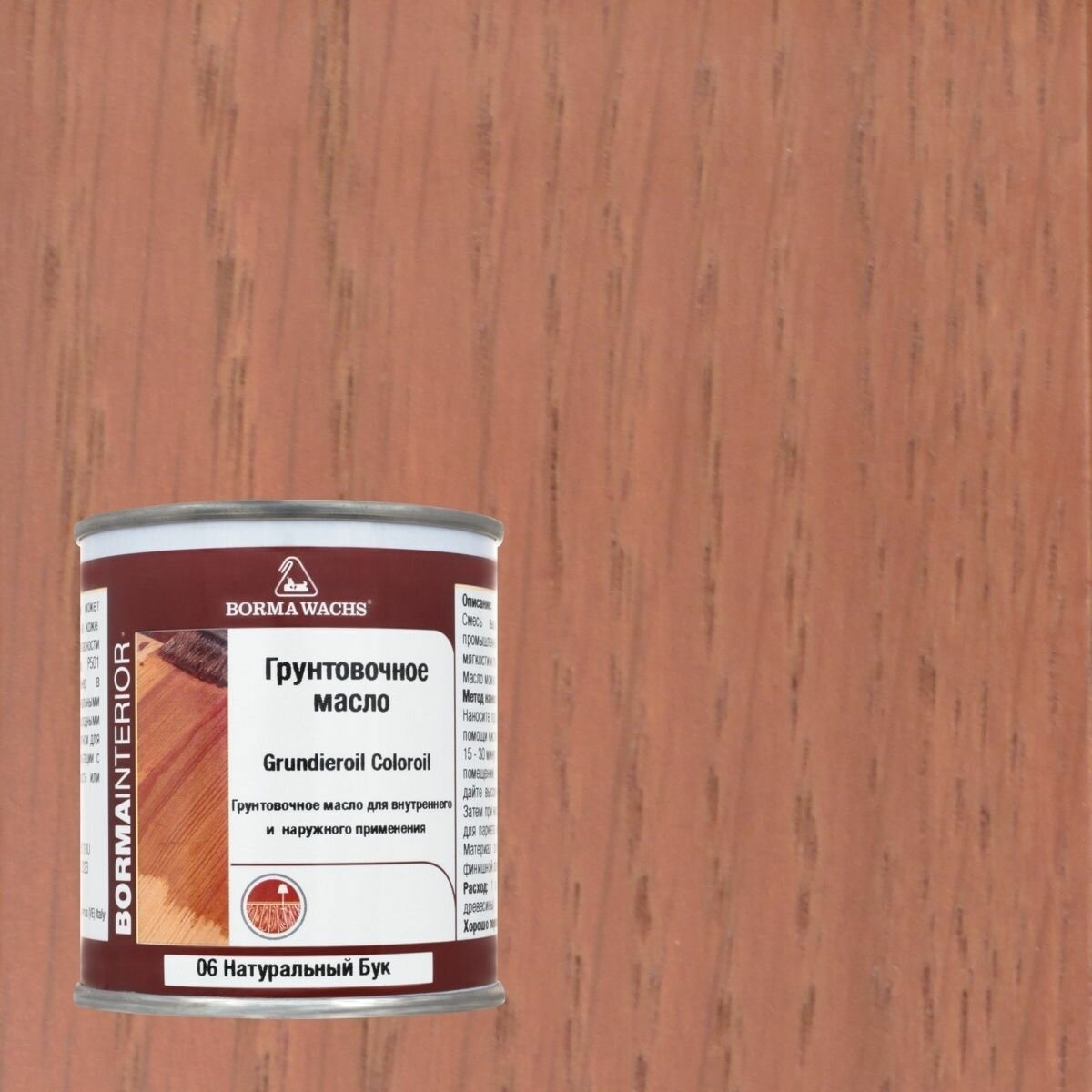 Масло грунтовочное Borma Grundieroil для обработки древесины для наружных и внутренних работ (125мл) 06 Натуральный бук R3910-6.125