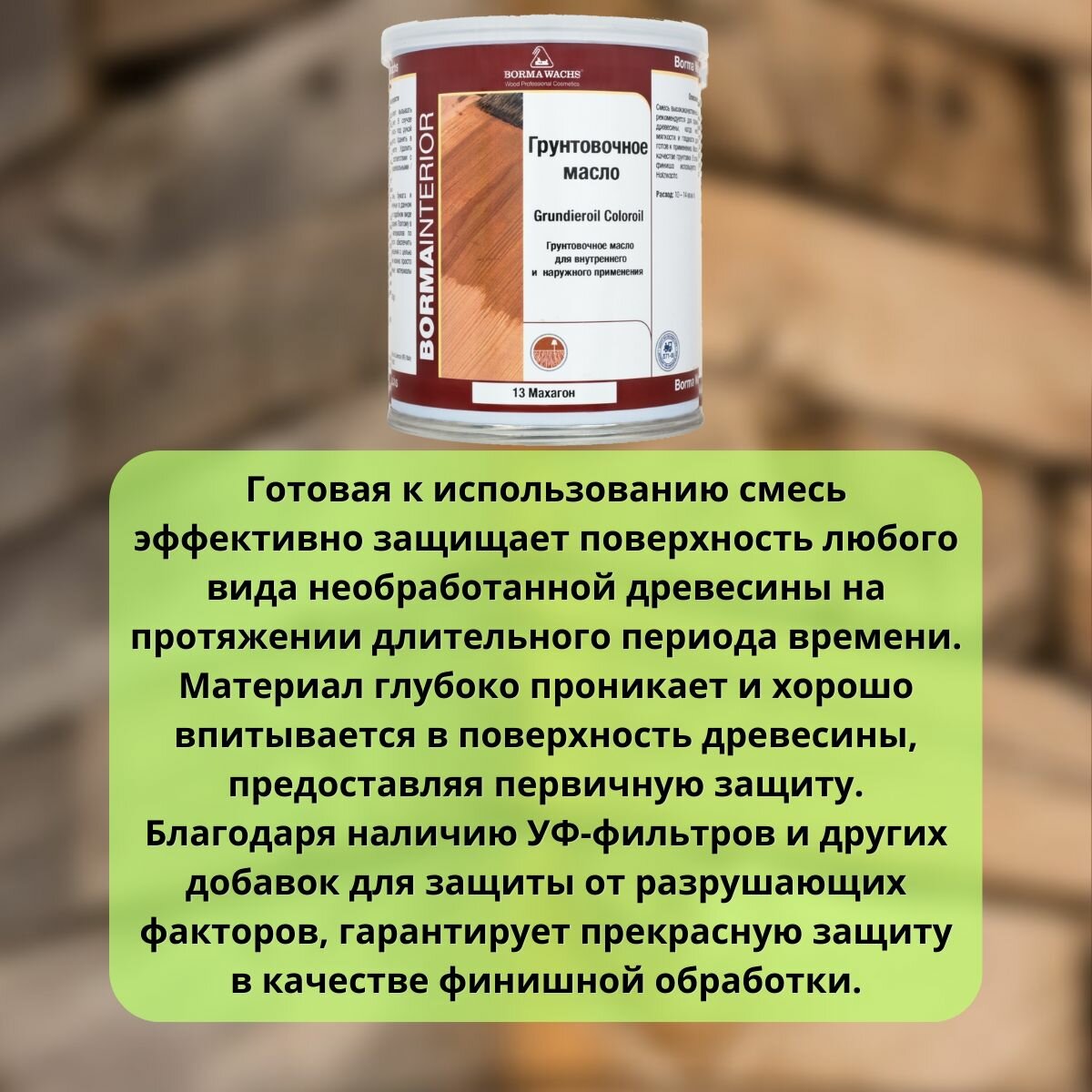 Масло грунтовочное BORMA GRUNDIEROIL для обработки древесины для наружных и внутренних работ 1л 98 Камень 3910pt98 декоративная пропитка / морилка