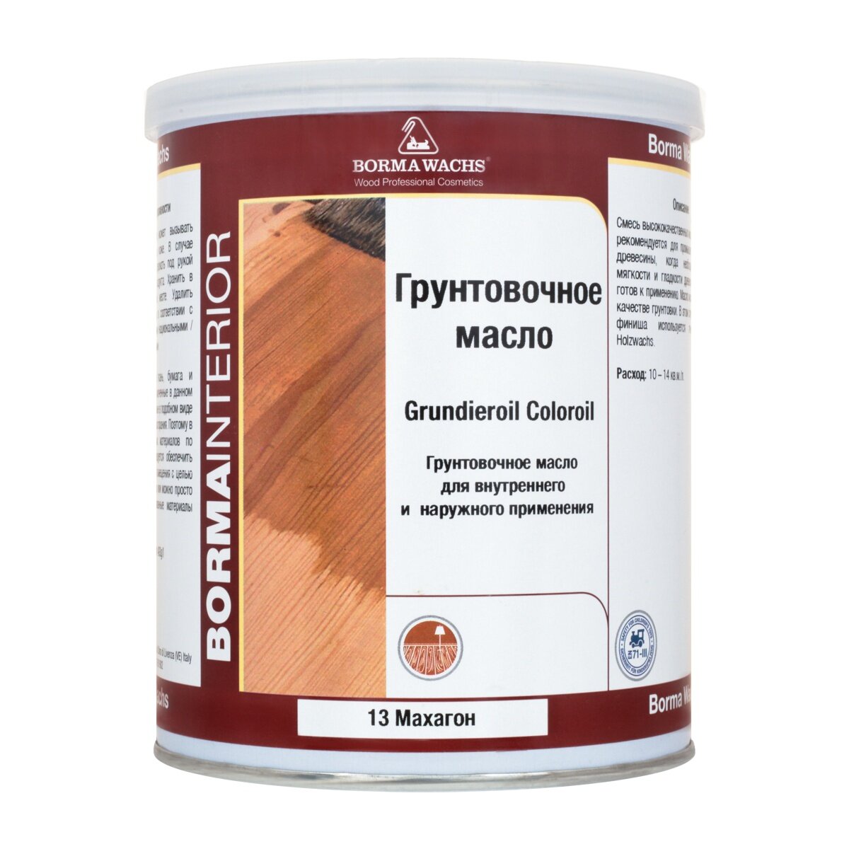 Масло грунтовочное BORMA GRUNDIEROIL для обработки древесины для наружных и внутренних работ 1л 13 Махагон R3910-13 декоративная пропитка / морилка