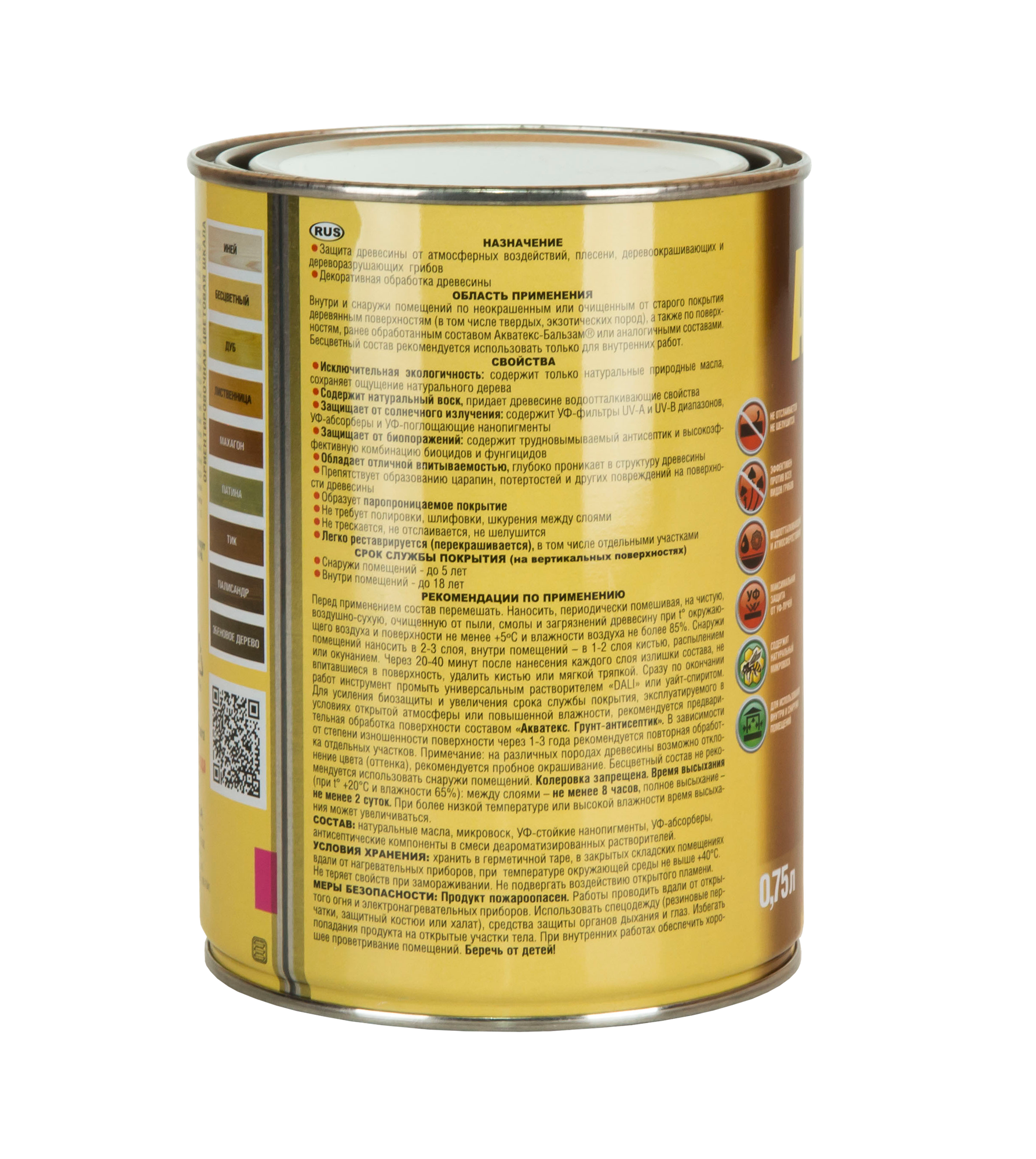 Масло натуральное для древесины Акватекс Бальзам, тик 0,75 л