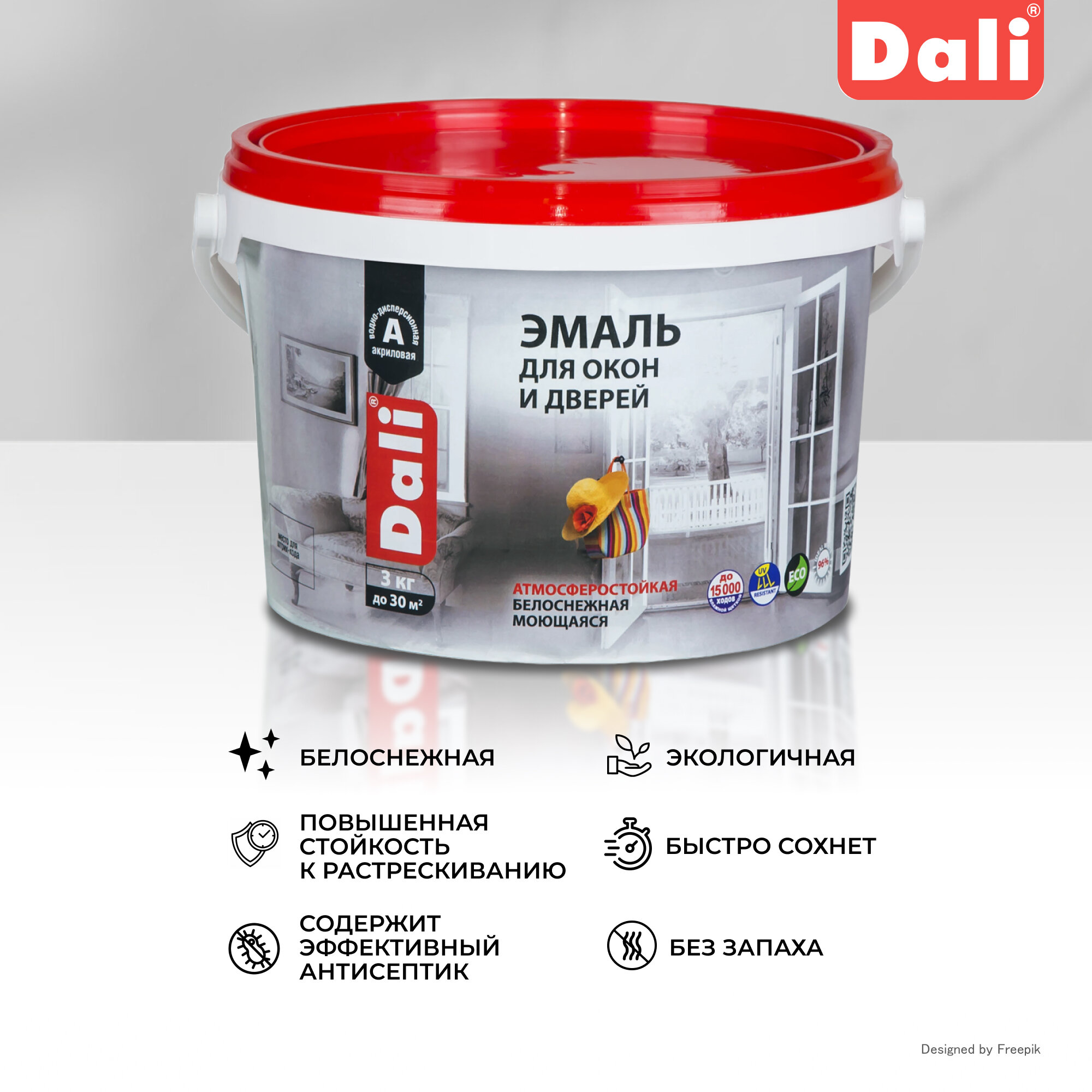 Эмаль для окон и дверей Dali, акриловая, полуматовая, база A, белая, 3 кг