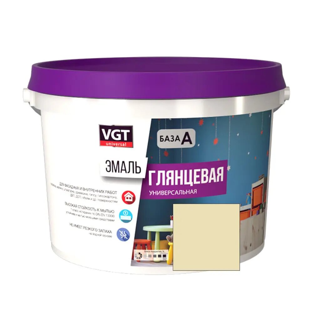 Эмаль универсальная ВД-АК-1179 VGT цветная глянцевая (2,5кг) ванильный RAL 9001