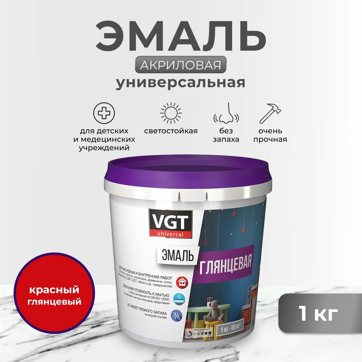 Эмаль универсальная VGT ВД-АК-1179, глянцевая, 1 кг, красная