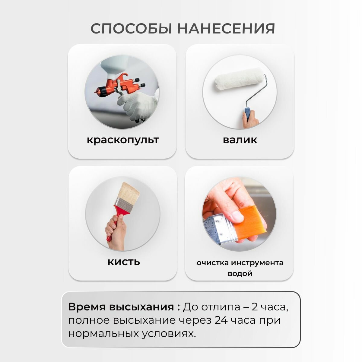 | Область применения | для влажных помещений / для гаражей / для дверей / для крыши / для мебели / для окон / для перегородок / для пола / для полок / для потолков / для стен / для ступеней / для фасадов / эмаль |