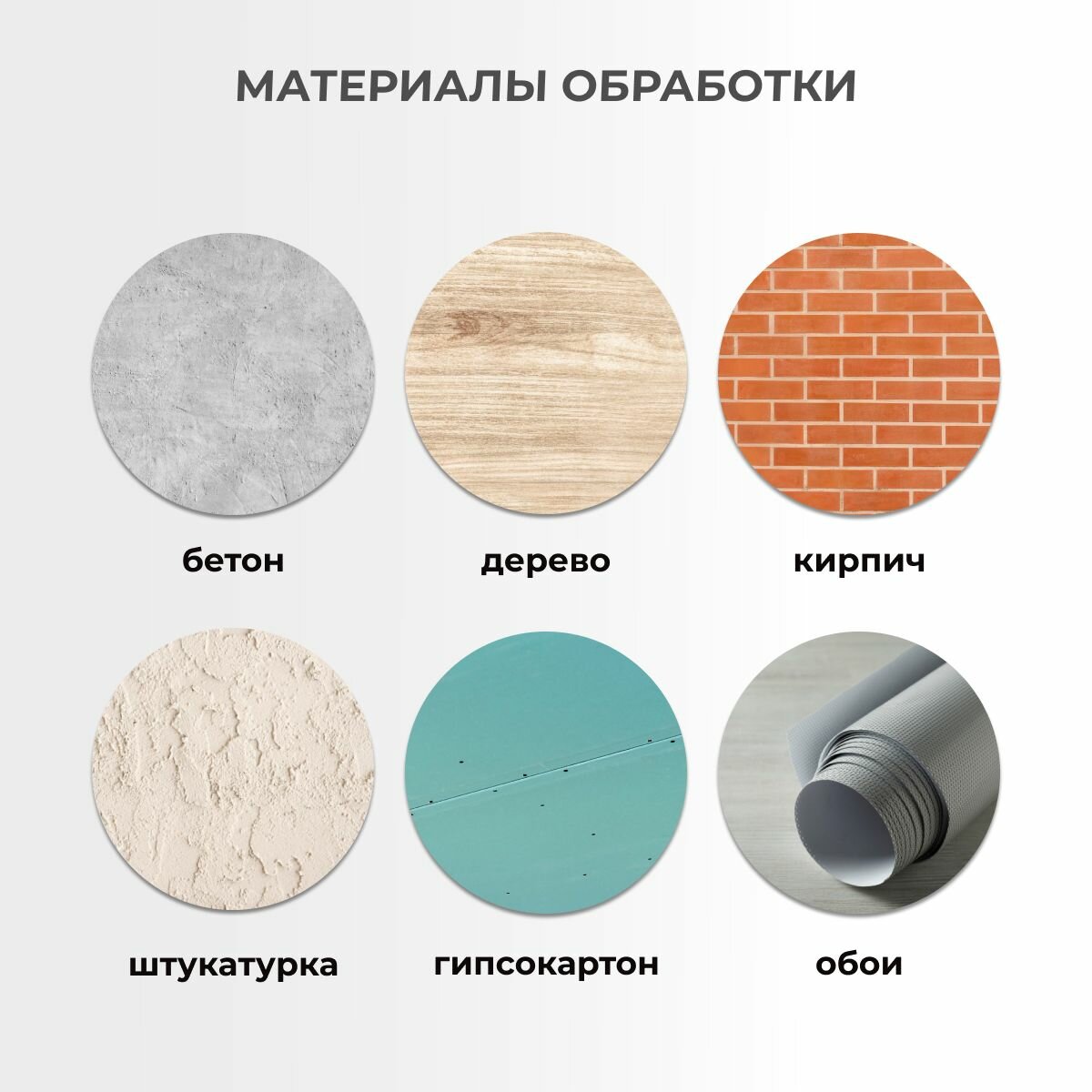 | Материал обработки | бетон / гипс / гипсокартон / дерево / камень / кирпич / краска / металл / обои / оштукатуренная поверхность / паркет / ржавчина |