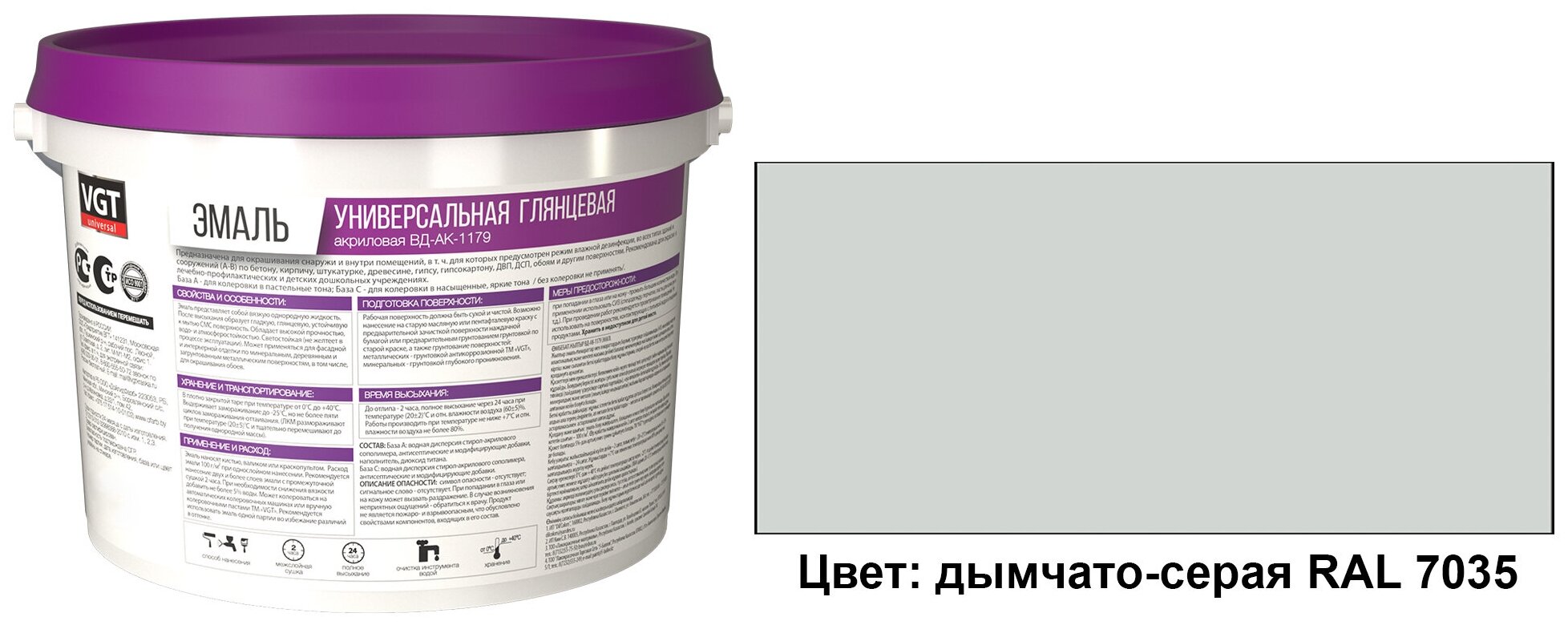 Купить Эмаль универсальная ВД-АК-1179 VGT цветная глянцевая (2,5кг) дымчато-серый RAL 7035