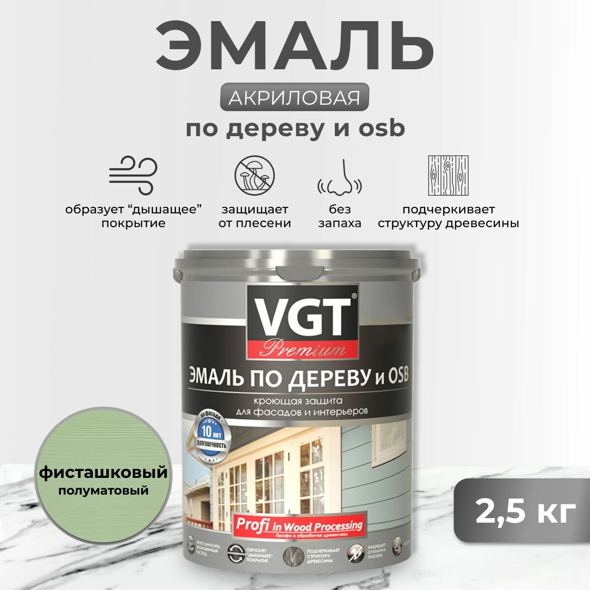 Купить Эмаль по дереву и OSB VGT Premium полуматовая (2,5кг) фисташковая