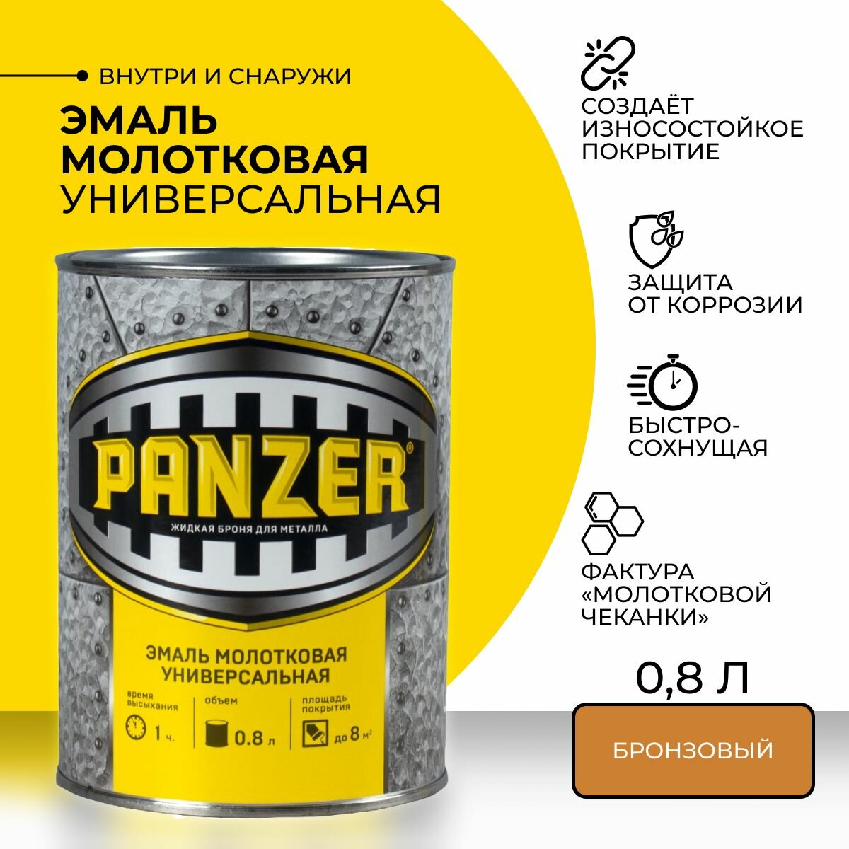 Эмаль универсальная Panzer, молотковая, 0,8 л, бронзовая, 1шт, жестяная банка