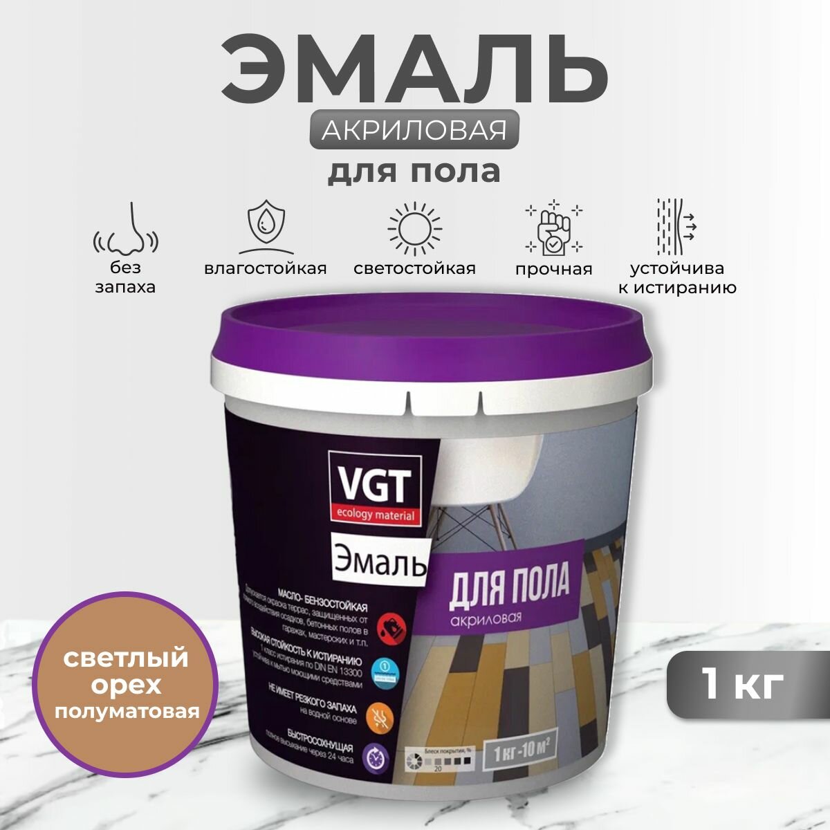 Ниже Вы можете прочитать отзывы на Эмаль акриловая для пола ВД-АК-1179 VGT Профи полуматовая (1кг) светлый орех, ознакомится с подробными характеристиками, посмотреть интересные обзоры и фотографии на Эмаль акриловая для пола ВД-АК-1179 VGT Профи полуматовая (1кг) светлый орех.