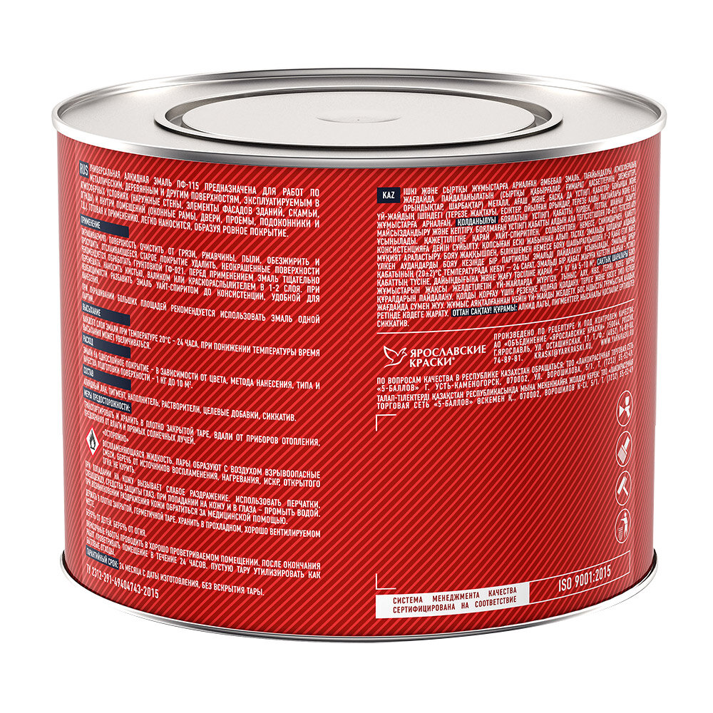 Эмаль ПФ-115 Faktor красная полуматовая 1,9 кг