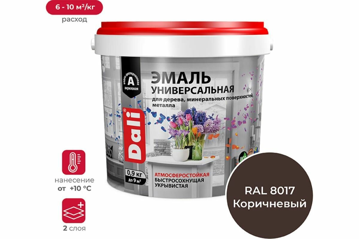 DALI / дали эмаль универсальная акриловая атмосферостойкая полуматовая коричневый RAL 8017 0,9 кг