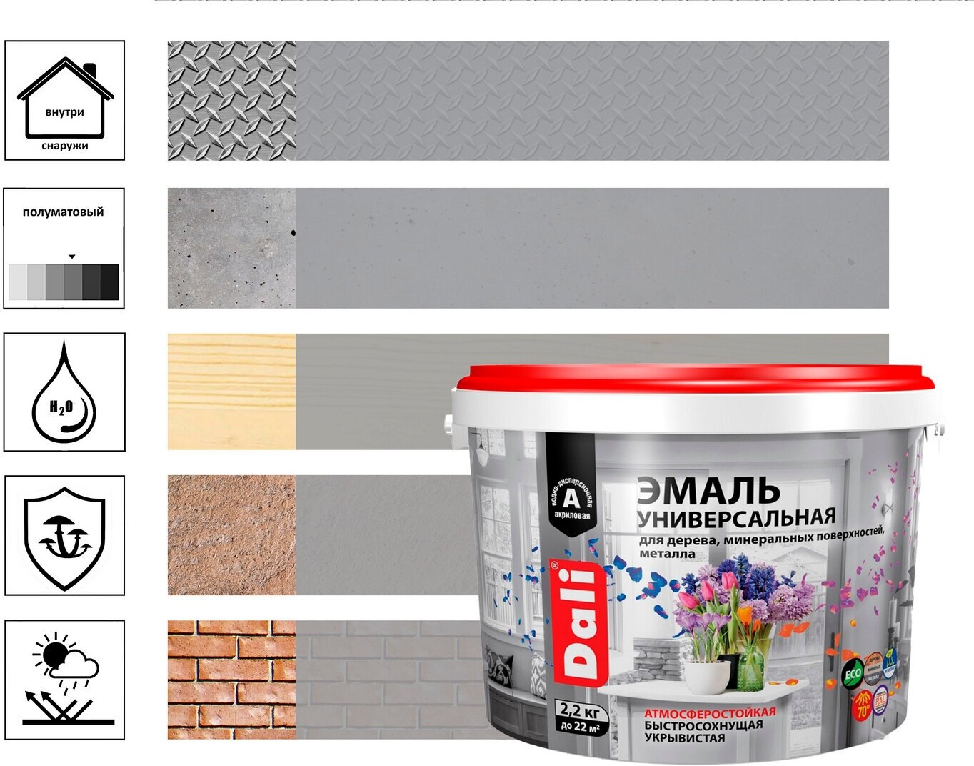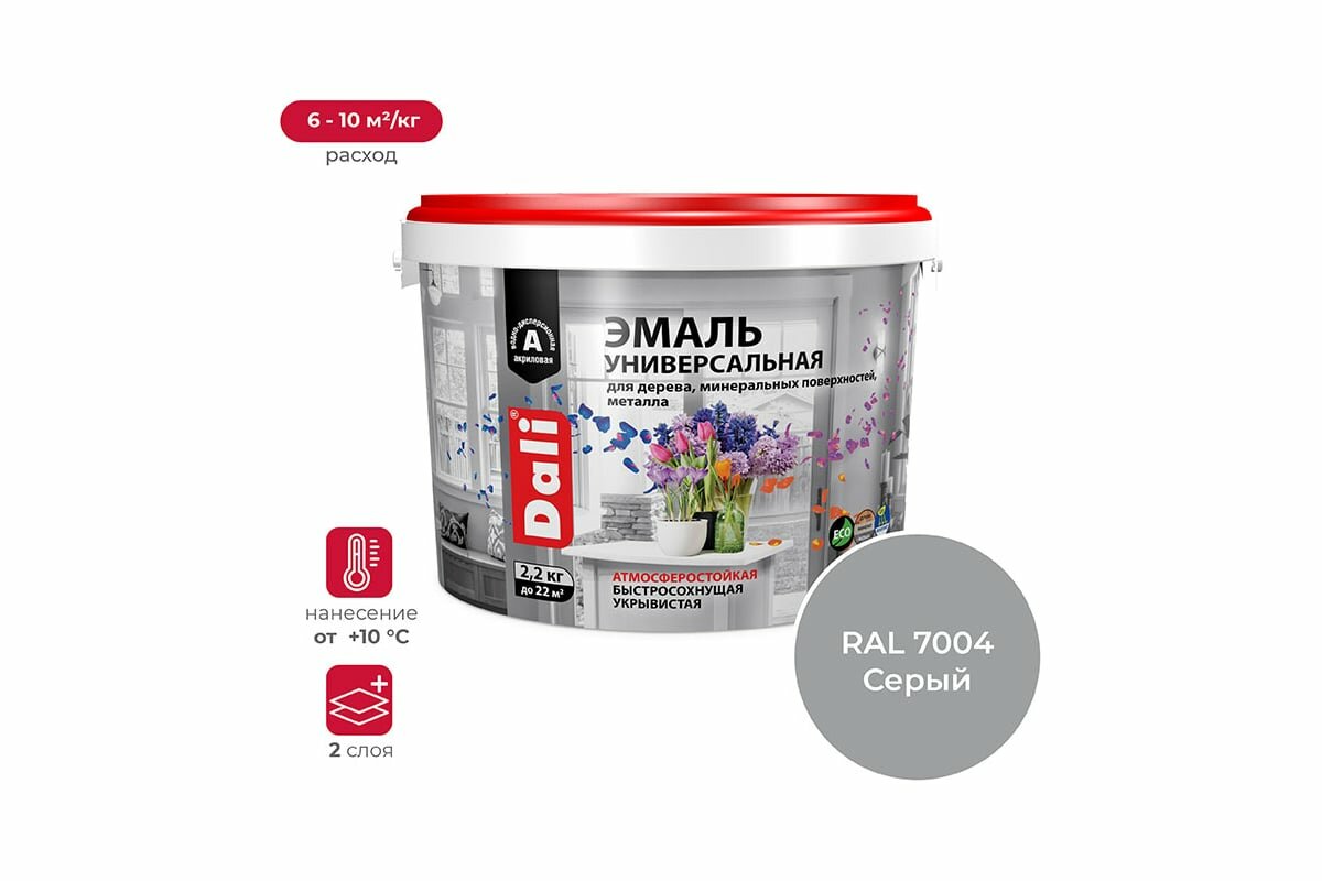 Эмаль Универсальная Dali 2.2кг Серый без Запаха, Акриловая / Дали.