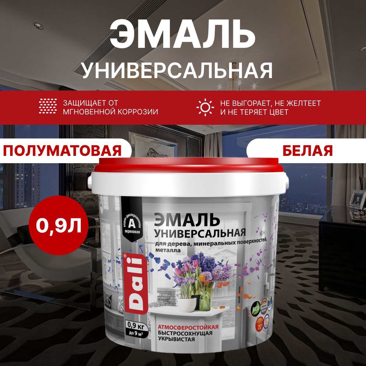 Эмаль Универсальная Dali 0.9кг Белый без Запаха, Акриловая Глянцевая / Дали.