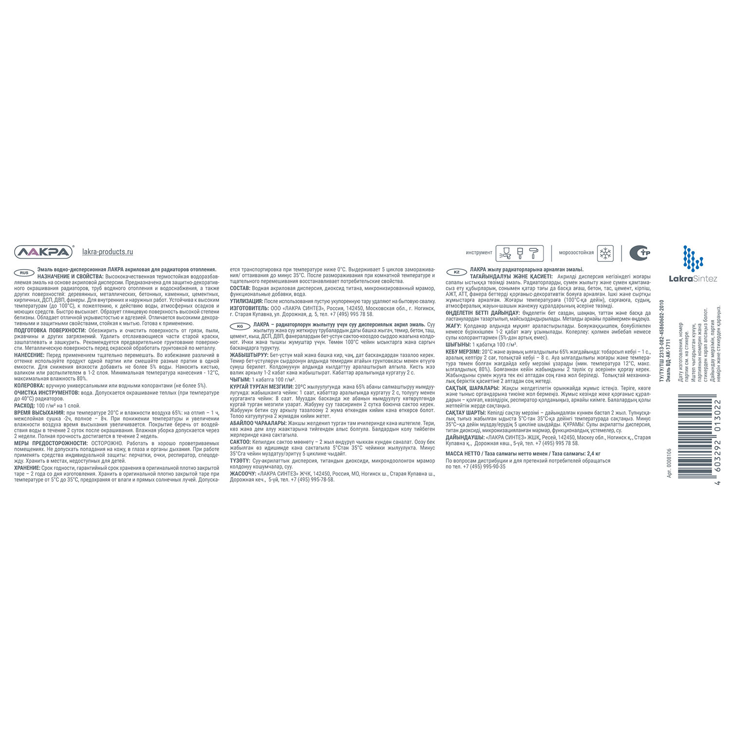эмаль акриловая лакра для радиаторов глянцевая белая 2,4кг, арт.0008106