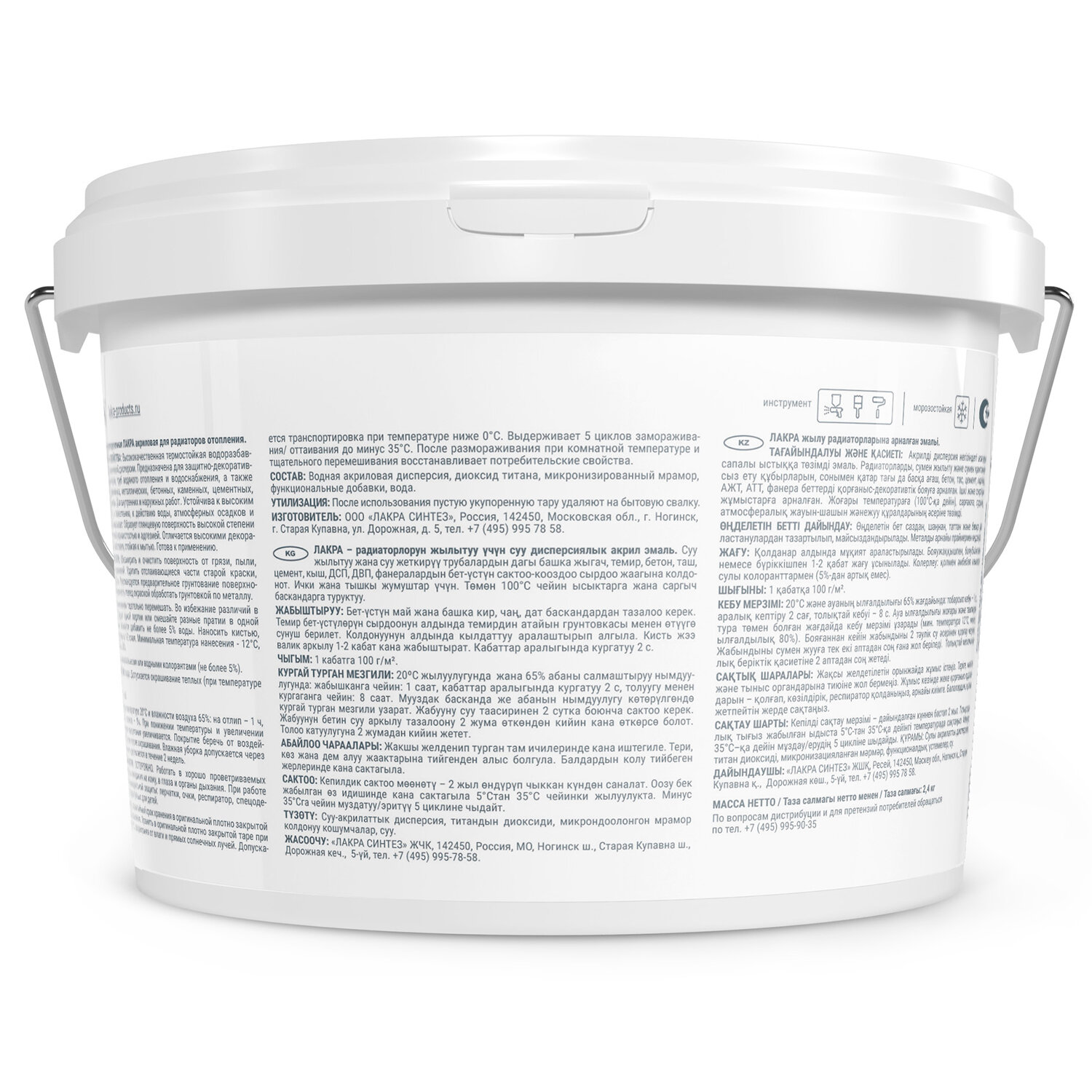 Акриловая эмаль для радиаторов отопления Лакра белая, глянцевая, 2.4 кг 90003485890