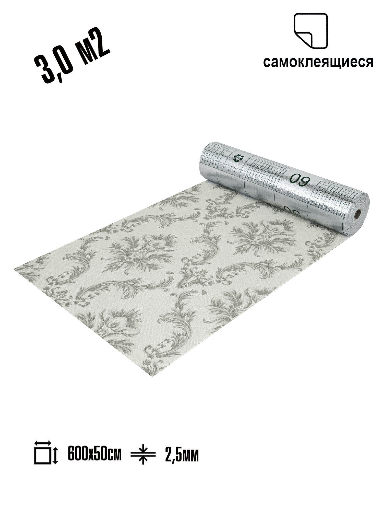 СохранитьСамоклеящиеся термоизоляционные обои LAKO DECOR 50x600 см, толщина 2,5 мм, Серый барокко 2 интересное: