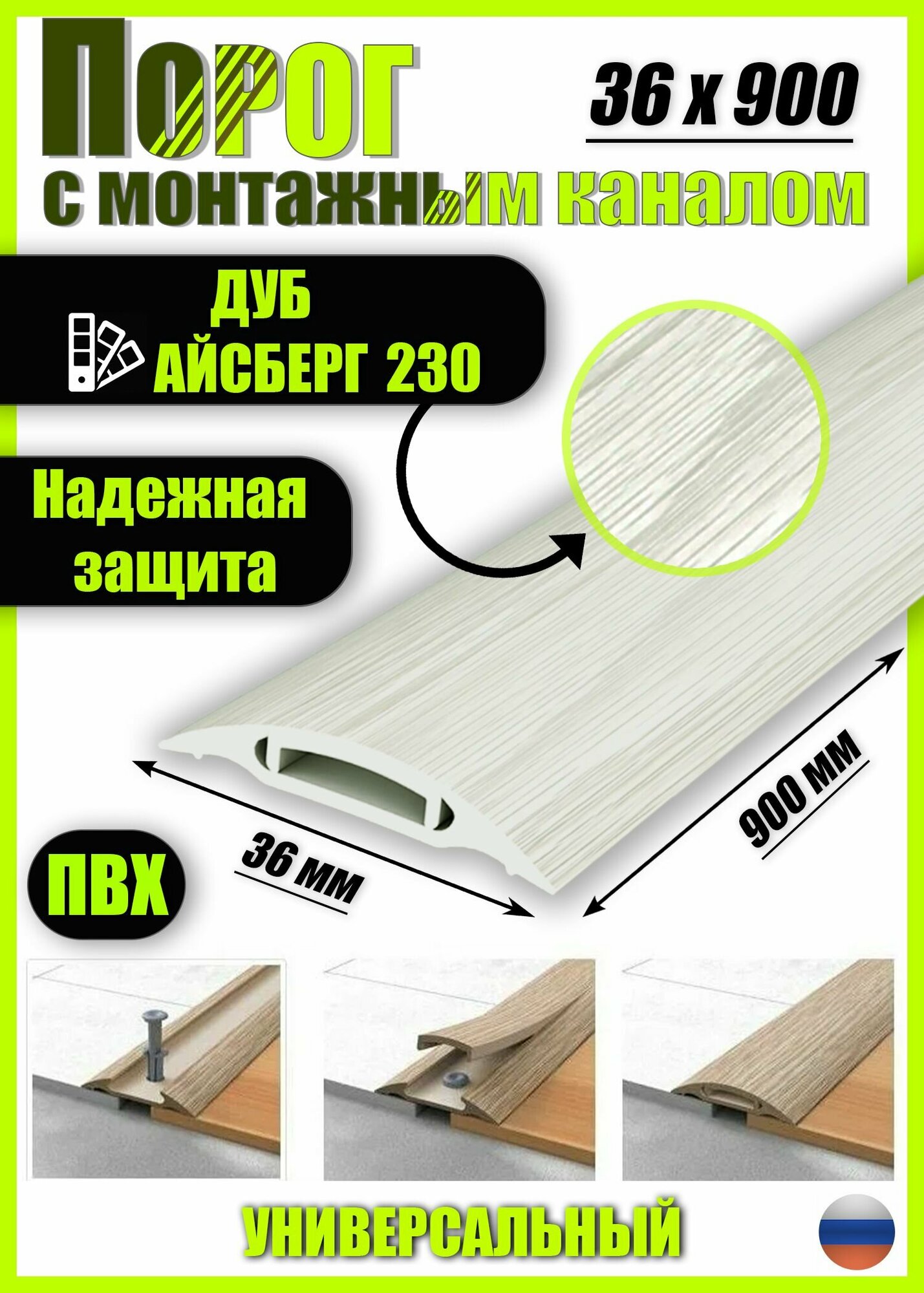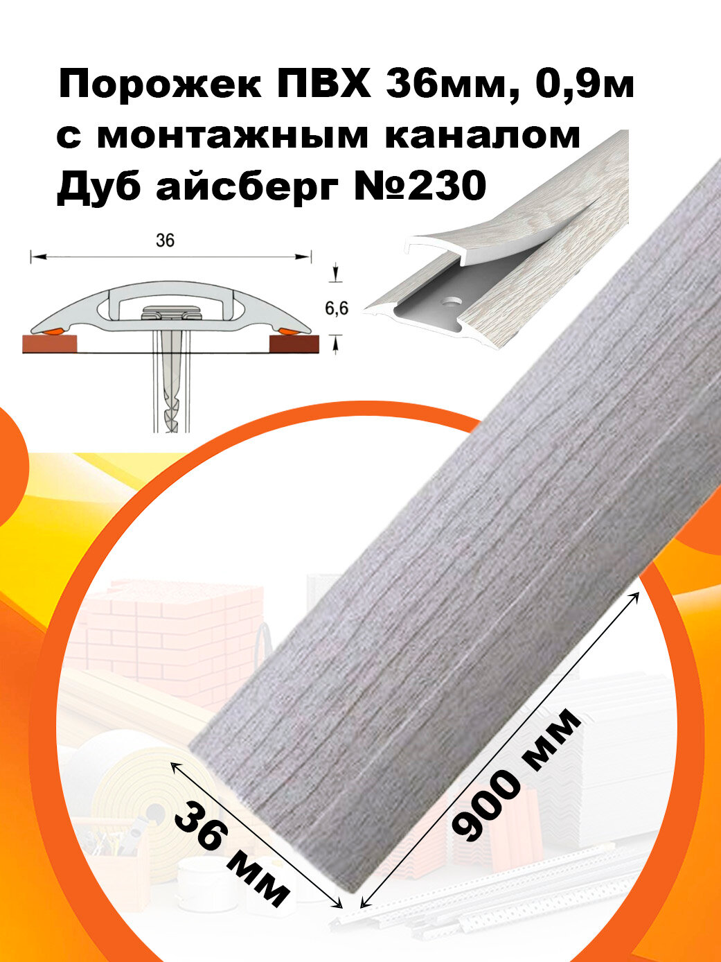 Порог с монтажным каналом, 230 Дуб айсберг, пластиковый, 36x900 мм, 1 шт.