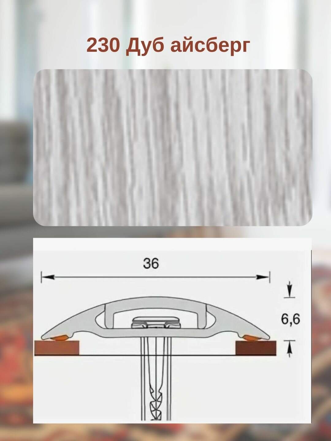 Порог самоклеющийся для пола 36 мм, длина 1,6 м, Идеал (Ideal) ИЗИ, пластиковый (ПВХ), дуб айсберг 230