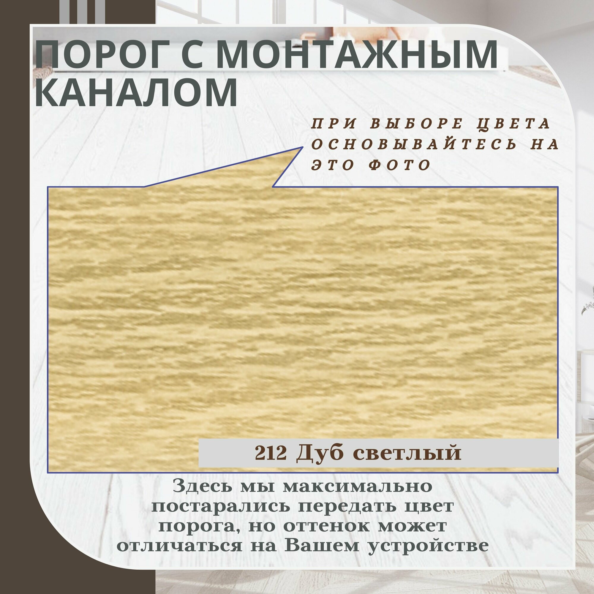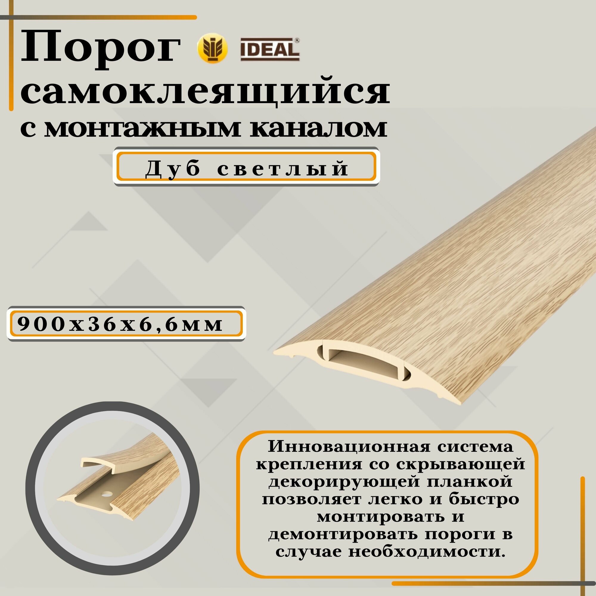 СохранитьПорог с монтажным каналом, 212 Дуб светлый, пластиковый, 36x900 мм, 1 шт. интересное: