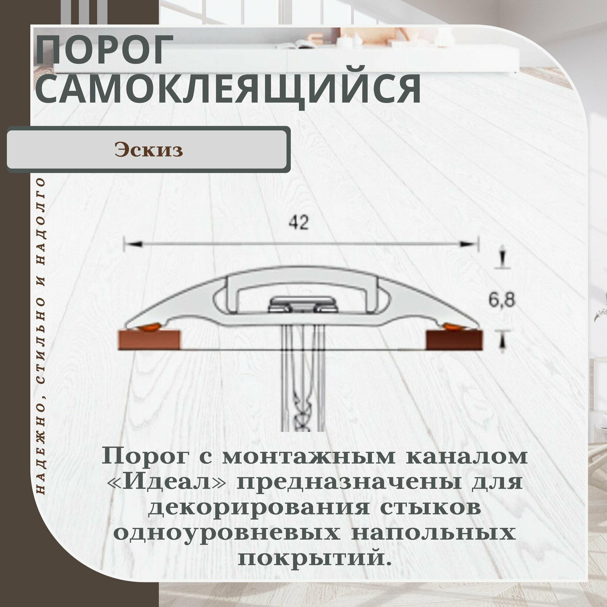 Порог с монтажным каналом 42мм 0,9м "Идеал", 205 Дуб капучино