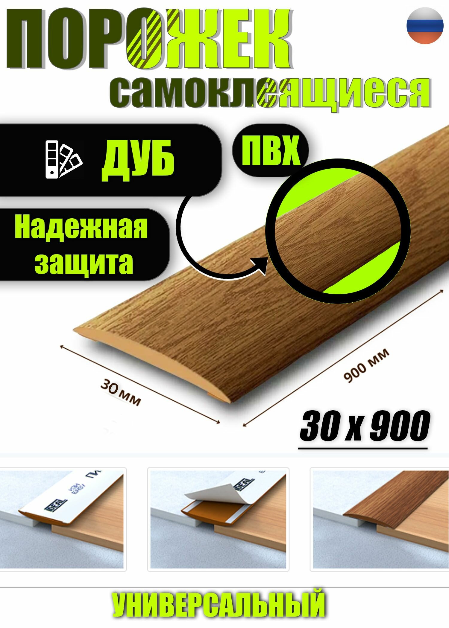 Порог ИЗИ 201 дуб, 30x900 мм, самоклеющийся пластиковый, 1 шт.