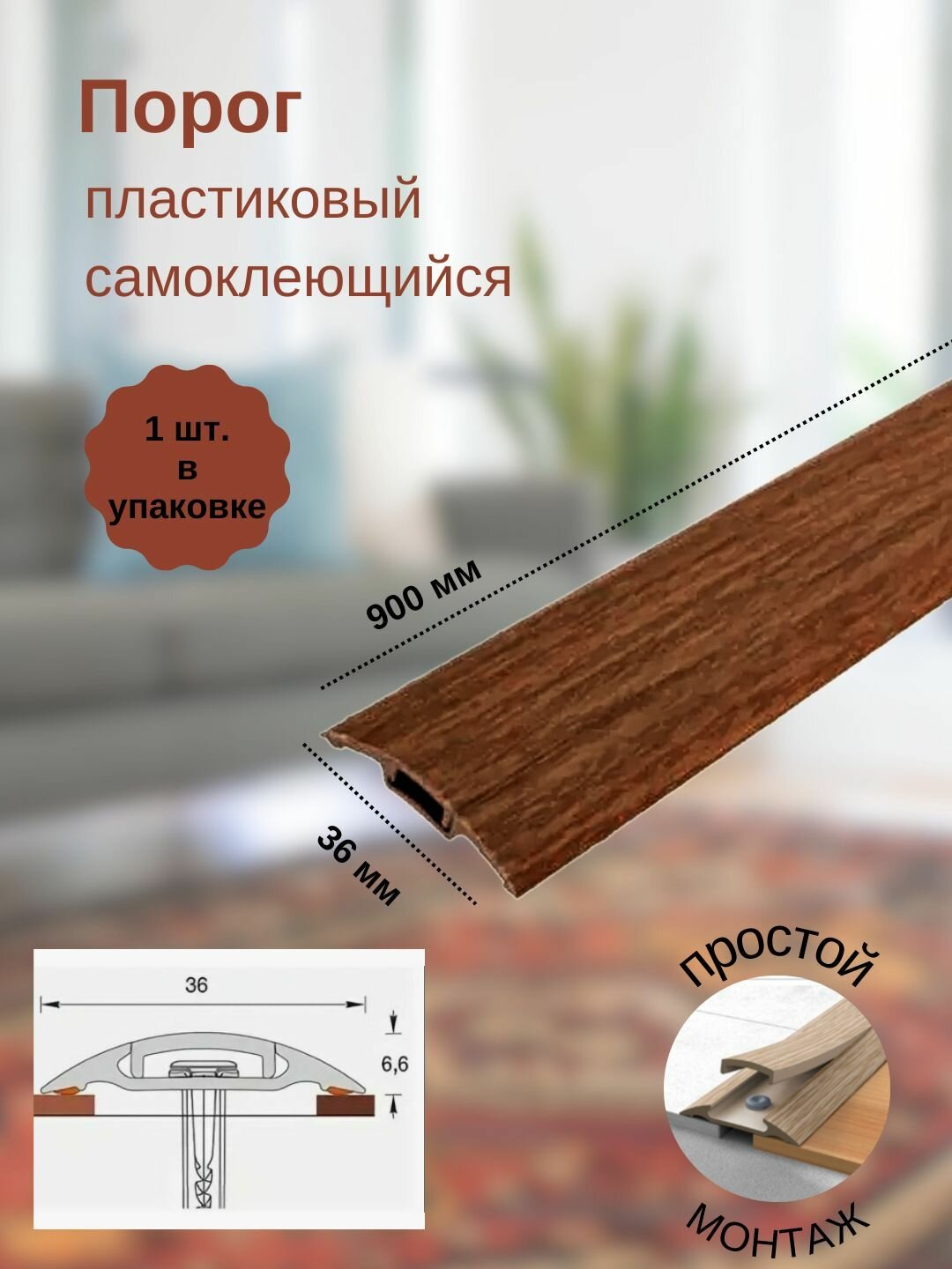 Порог 36мм 0,9м "Идеал Изи", 351 Каштан