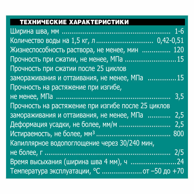 | Особенности | морозостойкий, повышенной влагостойкости, противогрибковая, химически стойкая, эластичная |