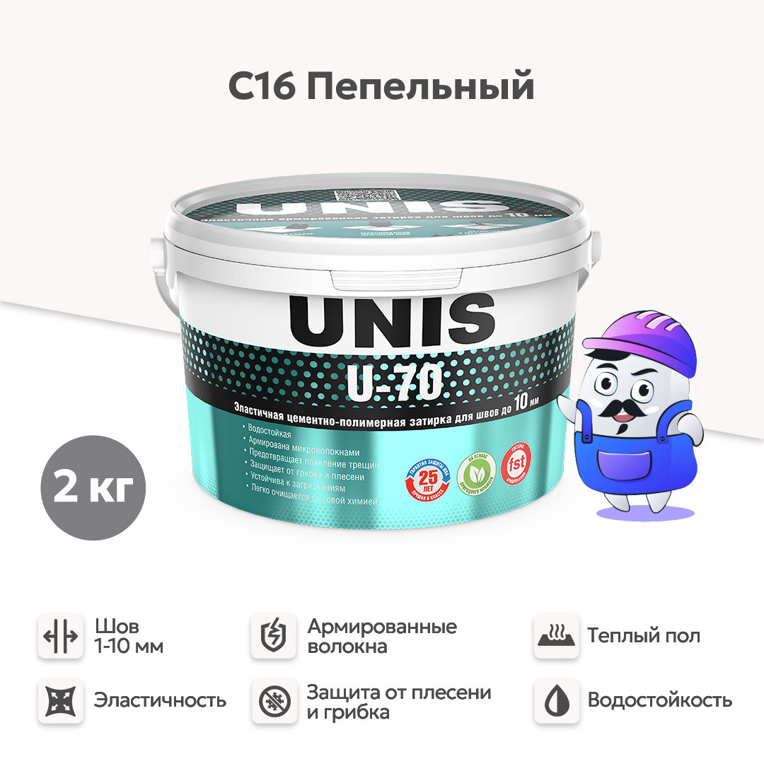 Затирка для плитки эластичная UNIS U-70 2 кг светло-серая С07/ Цементная армированная с защитой от грибка и плесени