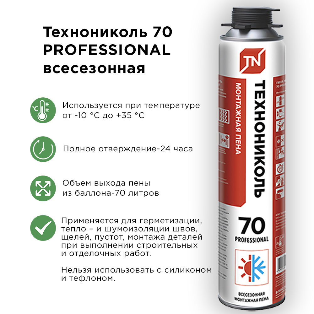 Монтажная пена ... Пена монтажная профессиональная Технониколь 70 PROFESSIONAL всесезонная 12шт-уп