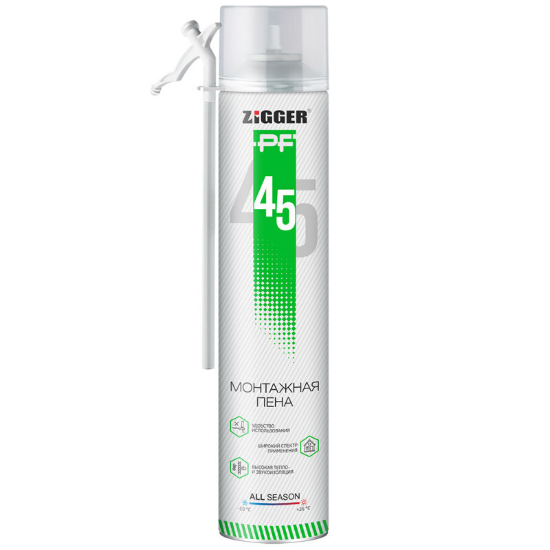 пена монтажная ZIGGER PF45 бытовая всесезонная 650мл, арт.01-03-54 интересное: