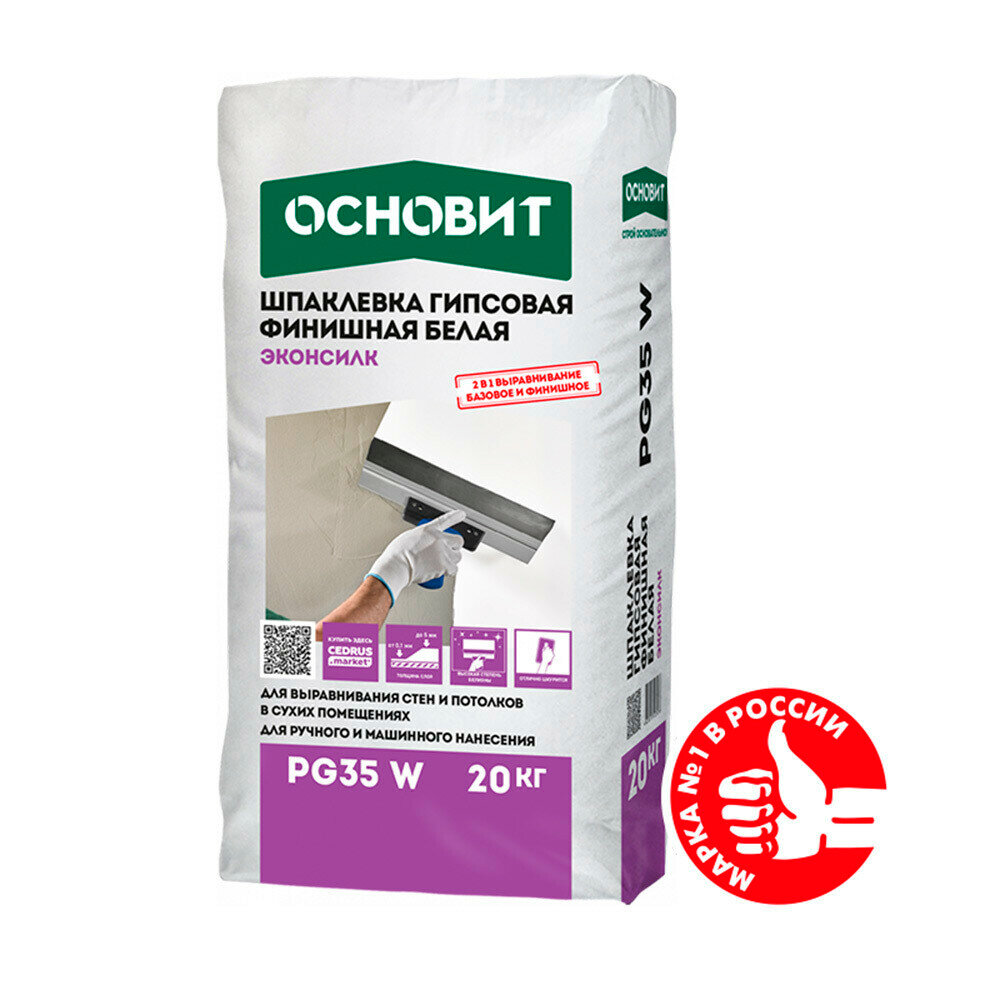 Основит PG-35W Эконсилк шпатлевка гипсовая (20кг) белая / основит PG35-W Эконсилк шпаклевка гипсовая универсальная (20кг) белая