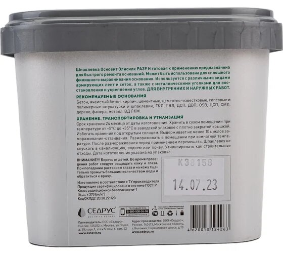 Шпатлевка армированная основит элисилк PA39 H 1 кг интересное: