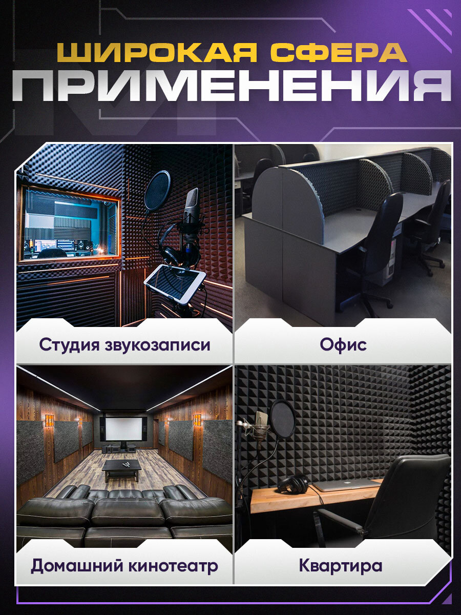 Акустический поролон пирамида 2000х1000х42 мм, звукоизоляция и шумоизоляция для стен интересное: