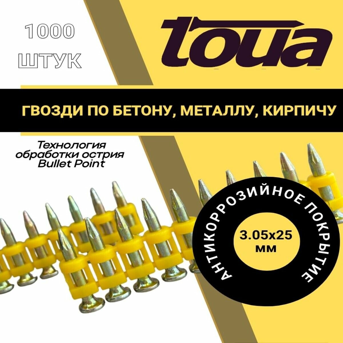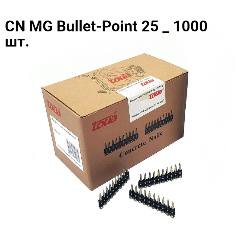 Усиленные дюбель-гвозди по бетону, металлу Toua, тип CN MG Bullet-Point 25, 3.05х25, упаковка 1000 шт.