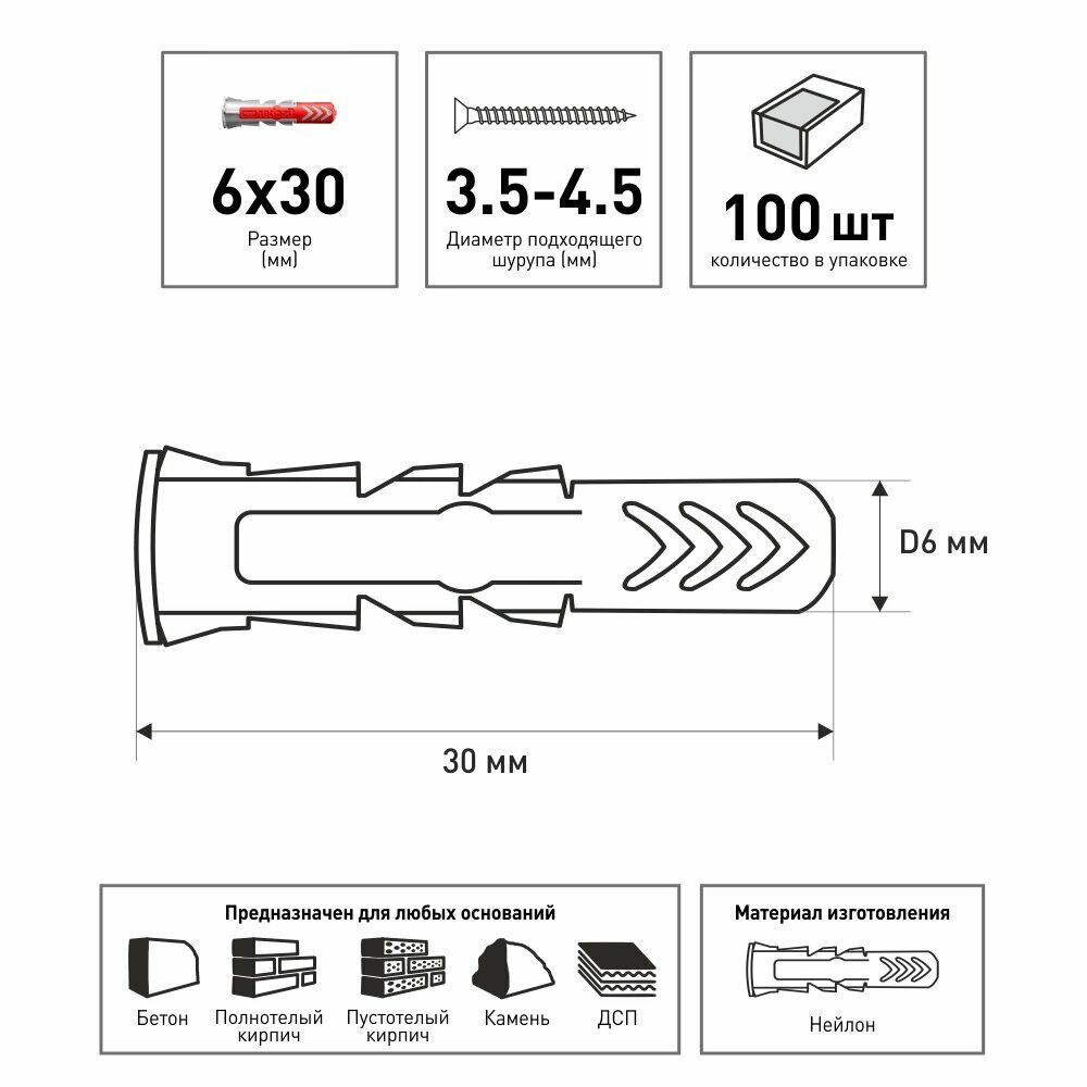 | Дополнительная информация | дюбель завязывается узлом при монтаже в пустотелый кирпич и гипсокартон |