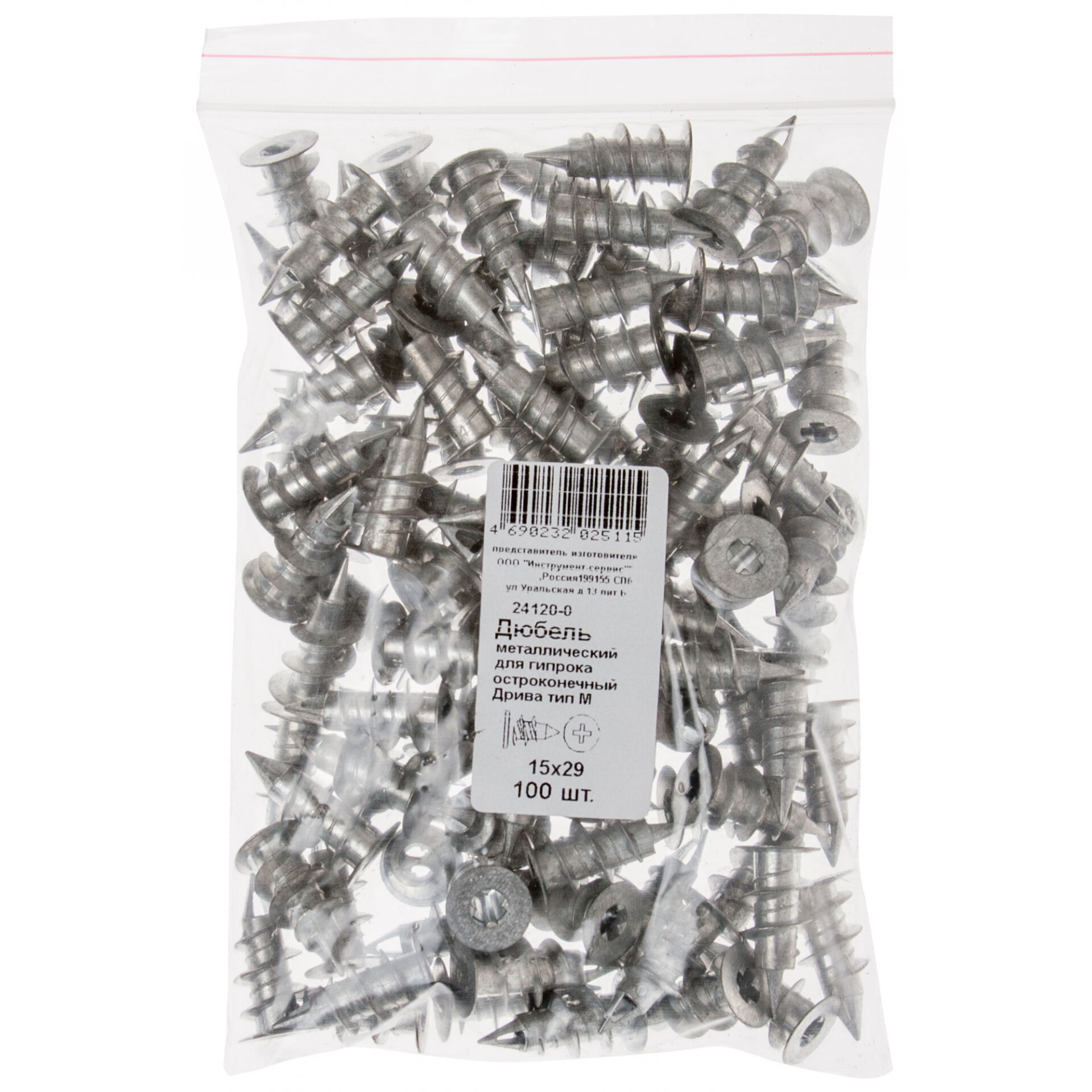 Дюбель металлический для гипрока, острокон.Дрива тип М, 15 х 29 мм, 100шт (Фасовка)
