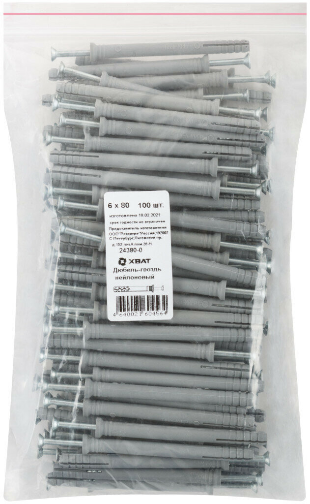 Дюбель-гвоздь хват 24650-0 6х40 100 шт