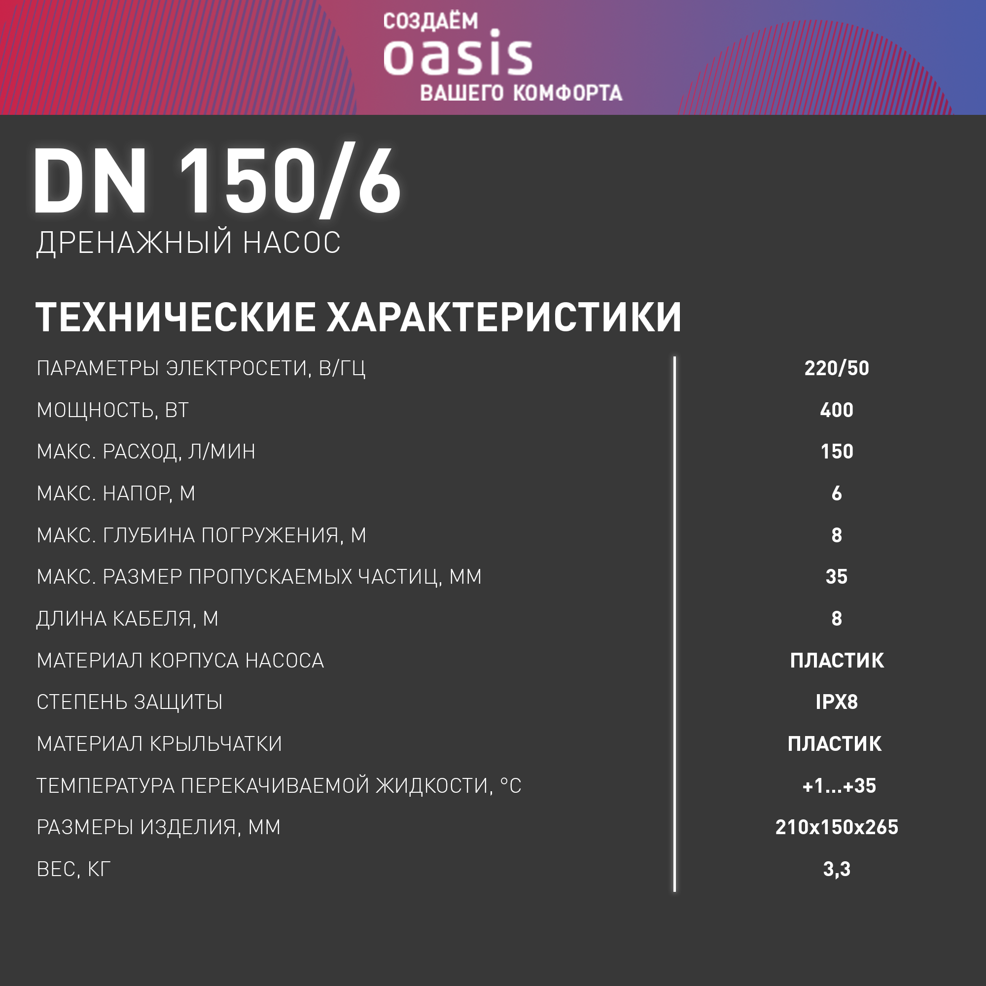 Купить Насос погружной дренажный для грязной воды making Oasis everywhere DN 150/6