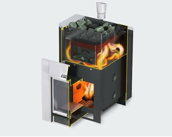 | Дополнительная информация | самоохлаждаемая ручка, чугунный колосник, вентилируемая открытая каменка емкостью 40 кг, центральное расположение дымохода, отверстие для чистки газоходов, дверка топки с панорамным стеклом |