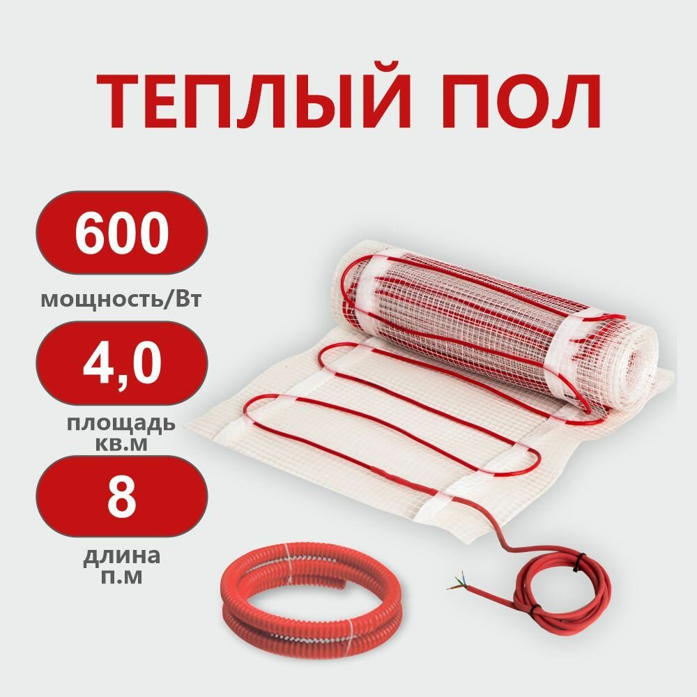 Тёплый пол электрический под плитку с терморегулятором 4.0м2